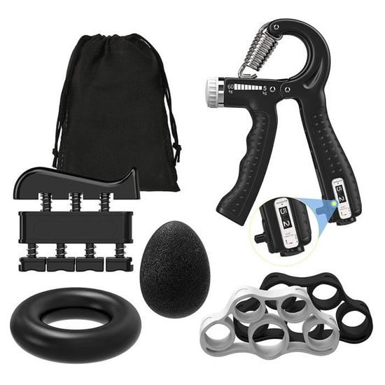 Fitness Materiel Hand Grip Musculation Main Musculation A-Vant Bras Ajustable Comptage Musculation Domicile Portable Avantages que vous pouvez obtenir : · Soulager le stress · Réhabilitation des blessures · Exercice d'endurance · Améliorer la force, la flexibilité des doigts, la... Musculation Main Kit de 6,Entraînement de Musculation Avant Bras,Pince 【AIDE À RENFORCER LA FORCE ET LA SOUPLESSE DES DOIGTS】L'étireur de doigt, l'anneau de préhension et la balle de préhension améliorent la force de préhension, la flexibilité des doigts, la puissance de l'avant-bras et du poignet. Poignet Musculation Pince De Musculation Main Réglable Grip Exerciseur Résistance réglable : de 5 kg à 60 kg (11-132 lb), vous pouvez régler la résistance en... La taille compacte vous permet de faire de l'exercice n'importe quand et n'importe où. 【RÉSISTANCE RÉGLABLE DE 5 À 60 KG】La résistance de l'appareil de musculation peut être facilement ajustée de 5 à 60 kg, ce qui convient parfaitement à diverses personnes, notamment les femmes, les enfants et les personnes âgées. 【COMPTAGE MÉCANIQUE】Il peut être compté automatiquement en appuyant sur le bouton de la poignée. 【KIT DE 6 PIÈCES POUR LE RENFORCEMENT DES POIGNÉES】Ce kit de renforcement des poignées comprend 2 poignées, 1 tendeur de doigt, 1 exerciseur de doigt, 1 anneau de préhension et 1 balle de préhension, vous permettant de réaliser divers exercices de la main.