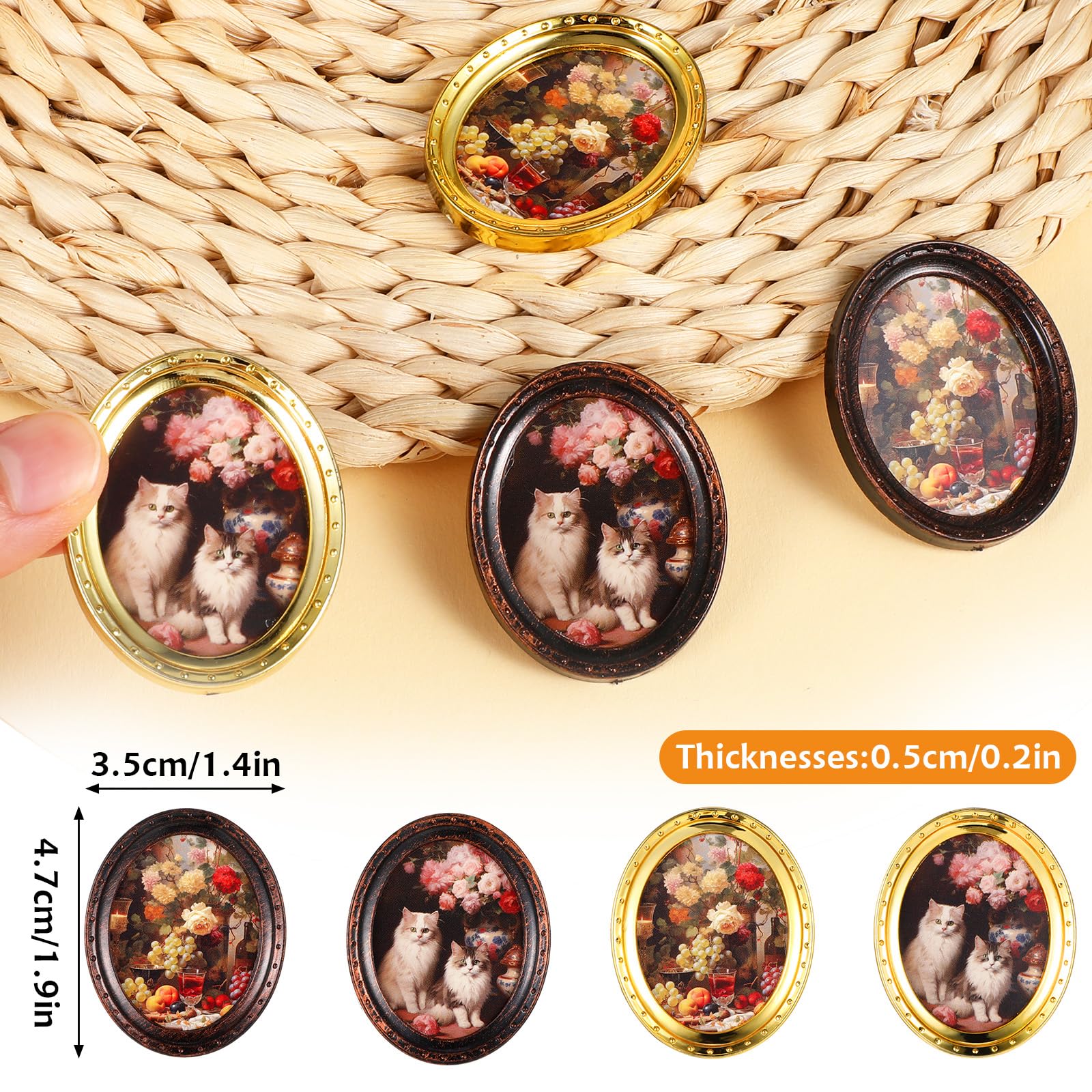 Les cadres contribuent à un sentiment de réalisme en permettant aux habitants miniatures (poupées ou figurines) d'afficher des photos de famille, des œuvres d'art ou des miroirs, ajoutant ainsi de la profondeur à leur vie fictive. Maison De Poupée Décoration Réaliste Cadres Photo Miniatures Pour Maison De Poupée, 6 Pièces, Mini Cadres Accessoires Miniatures échelle 1:12 Liste de colisage : ensemble de cadres photo de maison de poupée 4 pièces Taille du produit unique : 3,5 x 4,7 x 0,5 cm/1,4 x 1,9 x 0,2 pouces Couleur : bronze et or Matériau : plastique Lot bavoirs col marin enfant et poupée (cadres 20x30 et 13x18 cm Échelle et taille : la taille de chaque mini cadre photo de maison de poupée est de 3,5 x 4,7 x 0,5 cm et convient à la maison de poupée. Ils ont la taille parfaite pour les maisons de poupée ou les scènes miniatures et offrent un aspect réaliste sans submerger la petite échelle de l'environnement. TABLES DE PIQUE-NIQUE miniatures pour maison de poupée, Table 1:12 pour... renforce son charme à chaque trait complexe et chaque détail élégant. Attraction artistique : ce qui distingue ces accessoires de maison de poupée sont deux œuvres d'art charmantes de nature morte : « Roses et mignon chat de poupée siamois » et « saison Tipsy ». Ils offrent un bel effet décoratif pour que vous soyez fasciné par eux. Accessoire Maison Poupée Cadres Photo Miniatures Maison De Poupée Ces peintures se caractérisent par des couches riches et des détails charmants, chacun encadré dans un cadre somptueux et raffiné avec une finition vieillie de couleur laiton foncé. Les jouets sont colorés et lumineux, ils enrichissent la vue de votre enfant et offrent une expérience de jeu visuellement stimulante.