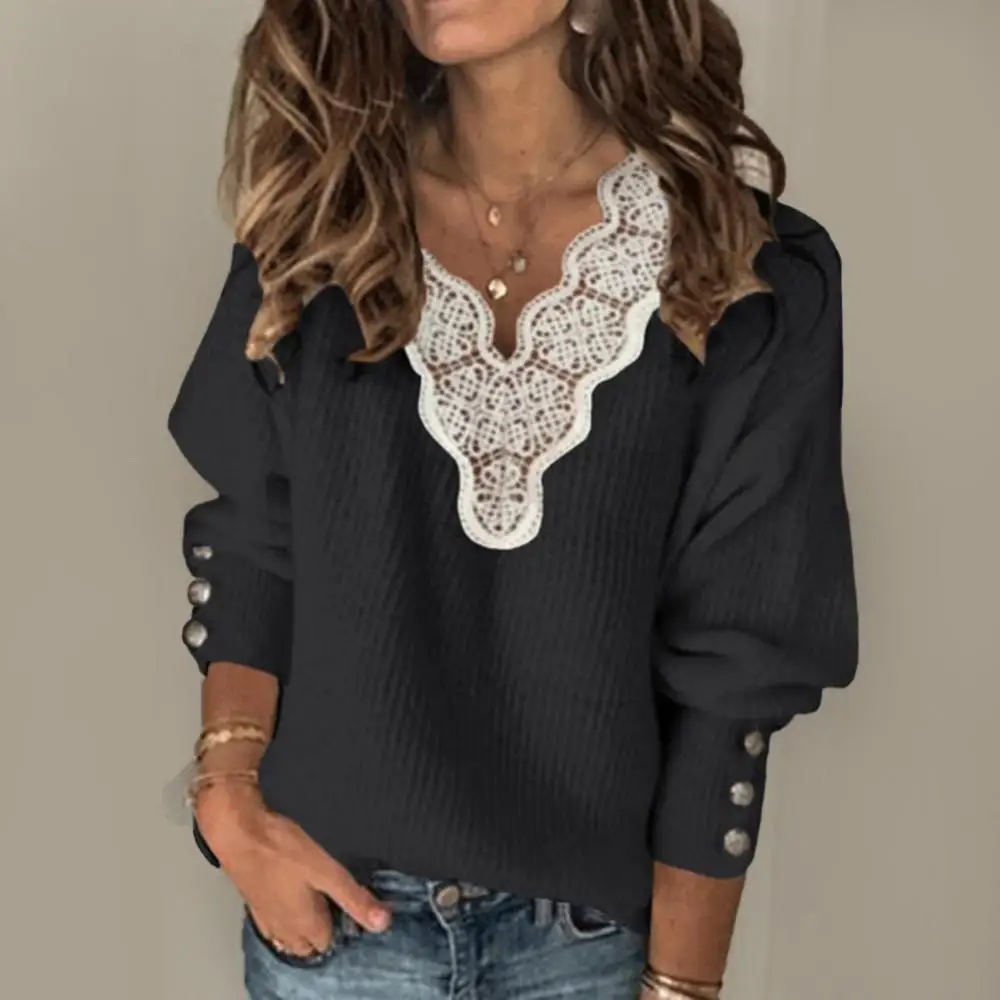 Chemisier Pour Femme Rose Dentelle Découpé Col Haut Décontracté Manches... TOMWELL. Pull Femmes Sweater Tricoté Pull À Tricot Décontracté Col V Sweat Élégant Pull Manches Longues Lâche Pullover Tops Blouse A Vin Rouge L C Kaki XL... Pull Col V Manches Longues Acheter Pull Tricoté à Manches Longues Et Col En V Pour Femme, élégant, Imprimé Patchwork, Sexy, Décontracté, Ample, Automne Hiver Pull Col V Femme Pull Col V Dentelle Femme – Taille 42+ | Léger & Élégant