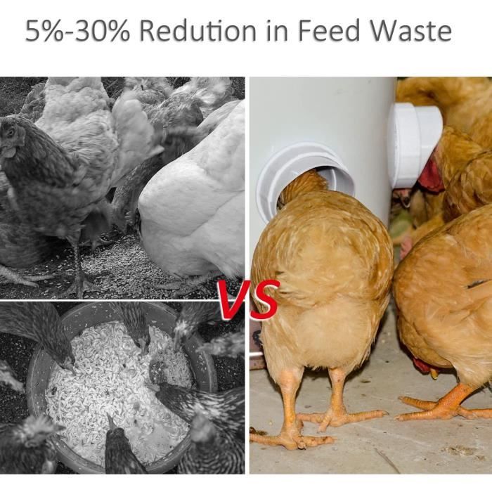 【Avantages Clés】 Réduction drastique du gaspillage, distribution réglable (quantité/heures). LeKuni DIY Mangeoire Poules 9 Ports, Abreuvoir Poussin Automatique, Mangeoire à Volaille Gravité Kit pour Seaux Tonneaux Bacs : : Commerce, Industrie et ScienceDemandez le retour de ce produit dans les 14 jours suivant la réception, pour quelque raison que ce soit, afin d’obtenir un remboursement complet (prix de l’article et frais de livraison) dans le cadre de votre droit de... Mode d'emploi 【Conseils d'Utilisation】 Hauteur d'installation : niveau de la poitrine des volailles pour une alimentation naturelle et moins de pertes. Pour poules, canards, oies et autres volailles. Kit Mangeoire Gravitaire 9 Becs Mangeoire Poules, Mangeoire Poule Automatique, 4 Ports DIY Mangeoire à Volaille Gravité Kit Pour Seaux Tonneaux BUNS Mangeoire Poules Anti Nuisible Ratio optimal : 1 bec pour 3 volailles (3:1) pour éviter la concurrence. Jusqu'à 23% d'économies de nourriture vs., mangeoires classiques. Matériaux ultra-résistants pour une durée de vie prolongée de 50%. 【Kit Économique de Mangeoires】 Spécial Élevage Familial : Comprend distributeurs avec bouchons, joints caoutchouc renforcés et emporte-pièce. Kit en PVC haute résistance : anti-choc, anti-corrosion et résistant aux intempéries. 【Installation Rapide】 Montage simple et ultra-rapide (même pour débutants). Idéal jardin et petit élevage. Ce kit de mangeoire à gravité DIY vous permet de nourrir vos poules facilement, en évitant le renversement des aliments. En utilisant ce système, vous pouvez... Couvercle intégré étanche pour garder l'aliment au sec. Durée de vie > 3 ans. KIT Mangeoire et Abreuvoir 8KG/7L
