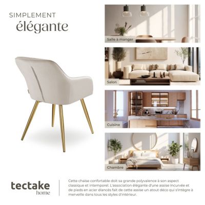 Chaise rembourrée confortable : cette chaise en velours avec un rembourrage épais et doux offre un grand confort d'assise pour de longues séances de repas ou des heures de détente dans le salon. Stabilité et durabilité : la structure en métal robuste et les pieds en caoutchouc antidérapants assurent une bonne stabilité et protègent le sol des rayures. Installation rapide et facile : le siège est de 42 × 42 cm. Le rembourrage en mousse haute densité assure un confort durable et une grande longévité, idéal pour une utilisation quotidienne. Lot de 4 chaises en velours matelassées et polyester rembourrées avec Le design sans bras permet une liberté de mouvement et une assise confortable pendant des heures. Avec ses pieds dorés, cette chaise de salle à manger apporte une touche élégante et luxueuse à votre intérieur. BlueOcean Furniture Lot de 4 chaises de salle à manger rembourrées en... En environ 10 minutes, la chaise rembourrée est montée et prête à l'emploi. Le magnifique dossier rayé associé à un design ergonomique rend la chaise encore plus confortable à utiliser. Cette chaise rembourrée est conçue pour un usage quotidien et durable. Lot 4 Chaises Design Moderne Lot De 2 Chaises De Salle à Manger Rembourrées En Velours Avec Dossier Et Pieds En Métal Doré - Pour Salle à Manger, Salon, Cuisine (2, Gris Chaise Moderne Salon COSTWAY Chaises Salle Manger Lot de 2, Tabouret de Bar en Lin... La chaise est livrée avec tous les outils nécessaires et des instructions faciles à comprendre (français non garanti).