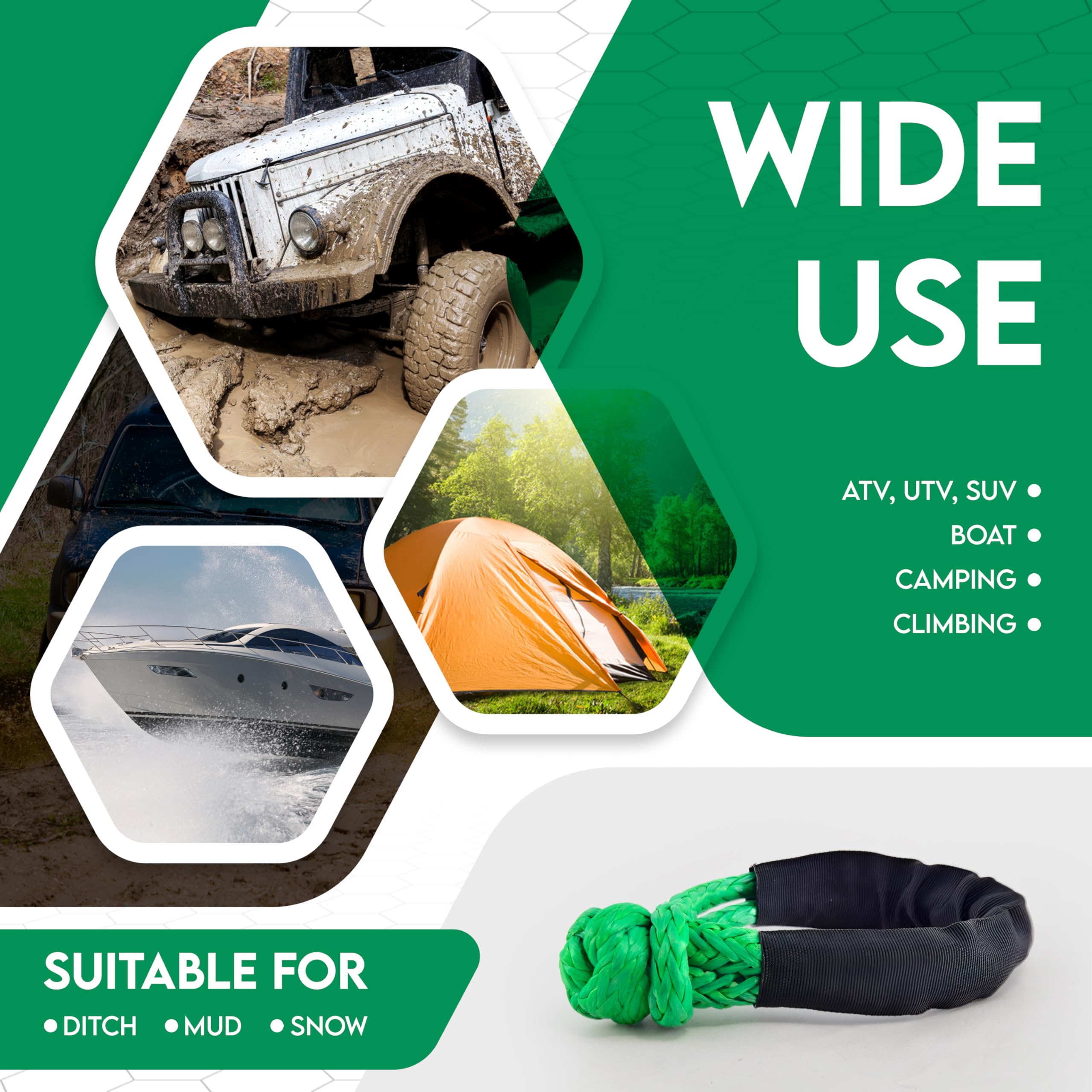 Manille souple synthétique de véhicule 4x4 haute résistance et flexible 12 brins UHMWPE avec manchon de protection Manille Souple Synthétique Pour Corde De Remorquage Tout-terrain De Treuil 12mm Vous en avez assez d'utiliser de lourdes chaînes pour attacher des lots ou des objets sécurisés ? Ne vous inquiétez plus une fois le Jinli manille souple uhmwpe est là pour révolutionner la façon dont nous faisons les choses, nous approfondirons les avantages révolutionnaires de la marchandise, ses utilisations, sa sécurité, son utilisation, sa qualité et ses applications Design léger : fabriquées en UHMWPE, nos manilles offrent un poids minimal sans compromettre la résistance, assurant une manipulation facile et un risque réduit de blessure. Les tiges de polyéthylène à poids moléculaire ultra-élevé (UHMW-PE) sont des tiges thermoplastiques techniques exceptionnellement résistantes à l'usure et à faible frottement, dont le poids moléculaire dépasse 3,5 millions de g/mol, offrant une résistance aux chocs exceptionnelle (≥200 J/m), une résistance chimique et une... Applications polyvalentes : parfait pour diverses utilisations, des aventures tout-terrain au gréement industriel, fournissant des solutions fiables quand et où vous en avez le plus besoin. Durabilité améliorée : dispose d'un manchon de protection en polyester pour plus de résistance à l'abrasion, prolongeant la durée de vie de votre corde dans des conditions rigoureuses.