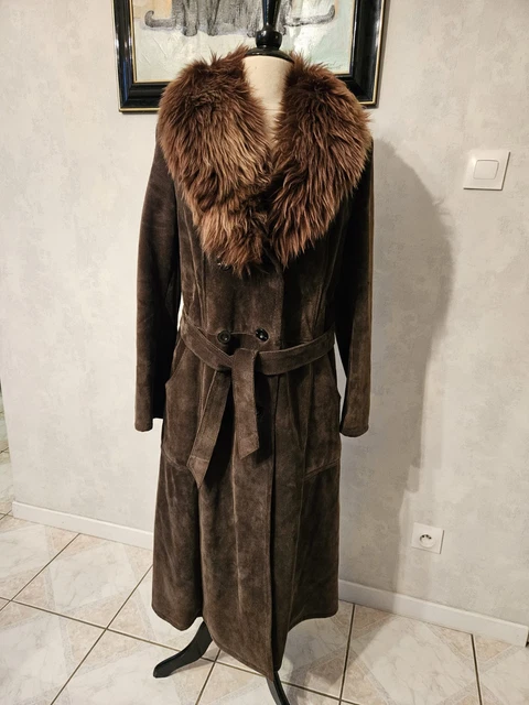Manteau de femme en daim - France La doublure intérieure douillette épouse le corps et protège efficacement du froid. Veste Hiver Doublure Fausse Fourrure Manteau Long Pour Femme Avec Fausse Fourrure Détachable Manteaux Femme Le manteau n'est pas seulement un point fort visuel, mais aussi un gage de chaleur agréable. Que ce soit sur une robe de soirée élégante ou comme mise à niveau luxueuse pour un look simple au quotidien avec un jean et un pull, ce manteau ajoute une touche de glamour hollywoodien à toute occasion Ce manteau allie charme rétro et fonctionnalité hivernale. L'aspect daim attrayant et la doublure intérieure douce en imitation peau d'agneau visible sur le col et les ourlets lui confèrent un caractère distinctif dans le style des années 70. La coupe cintrée souligne la silhouette de manière féminine, tandis que la fermeture asymétrique à boutons et l'ourlet évasé créent une... Chaud et élégant : le manteau n'est pas seulement une déclaration de mode, mais tient également au chaud par temps froid grâce à sa doublure douce sur toute la longueur La coupe longue réchauffe également les jambes. Look vintage polyvalent : un bon choix qui peut être combiné aussi bien avec des pantalons évasés et des bottes qu'avec une robe pour créer un look rétro authentique La combinaison de la surface veloutée aspect daim et de la fourrure synthétique opulente et douce rayonne un pur luxe et un style bohème chic. Combinaison élégante de matériaux : fabriquée en daim synthétique doux dans un ton marron chaud et doublée d'imitation peau d'agneau contrastée de couleur crème Ce manteau vous ramène directement dans le monde glamour et inadapté de la mode des années 70., Inspiré par des designs emblématiques tels que le manteau Penny Lane, c'est une pièce de déclaration absolue pour la saison froide.