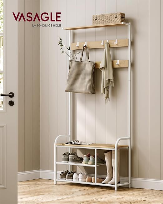 Il rehausse la touche de l'entrée tout en s'intégrant harmonieusement à différents styles d'intérieur La tablette du dessus peut servir de banc le temps de mettre ses chaussures. étagère à Chaussures 3 Niveaux COSTWAY 4en1 Porte-Manteau Vestiaire à Chaussures, Meuble D'Entrée Avec Banc Et 5 Crochets Doubles 100x40x160 CM Gris Foncé - Maison Etagere Metal Meuble d entrée avec banc 9 crochets et étagère 30 x 85 x 180 cm porte-manteaux vestiaire pour couloir chambre style industriel marron rustique et noir... Manteaux, sacs, bonnets, écharpes, paniers… Vos accessoires seront à portée de main. Porte-manteau sur Pied en Bois et Métal Porte-manteau d'entrée Vintage Étagère à Chaussures à 3 Niveaux Crochets Vestiaire Vestibule Salon Description : Envie d'un portemanteau pour sublimer votre entrée ? Découvrez ce portemanteau sur pied. Un modèle en matériaux soignés, résistant à l'usure. Matériaux Sélectionnés : Ce porte-manteau industriel possède une armature métallique à finition soignée et des tablettes en panneaux de particules résistants. Prêt à sortir/rentrer chez soi ? 1 × Porte-manteau sur Pied 1 × Notice de montage1 × Kit d’accessoires2 × Kit anti-basculement Avertissement De Sûreté Installation sécurisée : Assurez-vous d’assembler strictement selon les instructions pour vous assurer que toutes les vis et connexions sont serrées en place. Cadre en métal, couleurs sombres et matériaux bruts pour un effet industriel très tendance. Aspect brut, mais stylé Gain de place, c'est un meuble 2 en 1 qui cumule le portant à vêtement en haut et l'étagère à chaussures en bas, maximalisant sa taille fine de 185 cm de haut. Conception 6 en 1 : Ce meuble polyvalent combine un portemanteau, un banc à chaussures, un range-chaussures, deux tiroirs en tissu, une tringle à vêtements et une étagère supérieure pour un hall d'entrée bien rangé Conception Compacte, Économie d'espace : Avec 185 cm de hauteur pour seulement 0,4 m² au sol, ce meuble de rangement malin combine trois fonctions : banc de chaussures, suspension de vestes et manteaux, espace pour sacs. Structure Robuste Bois et Métal : Le banc à chaussures supporte jusqu'à 125 kg, offrant un siège solide pour enfiler vos chaussures. Ce meuble d'entrée s'avère esthétique et fonctionnel. Porte-manteau sur pied vintage