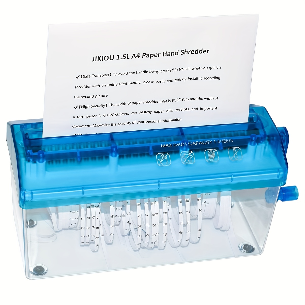 Yadoo Destructeur de Documents Manuel | Mini Déchiqueteuse à Main pour Papier A6/A4 Pliées | Outil de Coupe de Papier pour Bureau Accueil Maison(Orange Découvrez nos offres Déchiqueteuse de documents destructeur broyeur de papier manuel : large sélection de produits au meilleur prix | Livraison gratuite à partir de 10€* | Entreprise française | Paiement 4x possible Broyeur Manuel à Manivelle Mini Déchiqueteuse Manuel Destructeur De Documents Manuel Destructeur De Documents De Bureau Mini Broyeur Papier Manivelle Il peut détruire du papier, des reçus et des fichiers importants, maximisant ainsi la sécurité de vos informations. Il ne nécessite pas d'alimentation électrique, a un faible bruit de fonctionnement, est sûr et pratique à utiliser. 1 Pc déchiqueteuse manivelle destructeur de Papier Manuel Robuste... SCÉNARIO APPLICABLE : Ce broyeur manuel est compact et léger, et peut être facilement placé sur des étagères, des tables ou de petits endroits, occupant très peu d'espace. CONCEPTION COMPACTE : Cette déchiqueteuse manuelle présente une conception découpée en bandes, vous permettant de vous débarrasser rapidement du papier inutile. Retirez simplement le couvercle pour le vider. BOÎTE ET TAPIS INFÉRIEUR : Ce broyeur est doté d'une boîte en plastique de 1 L au design transparent pour une observation facile de l'intérieur.