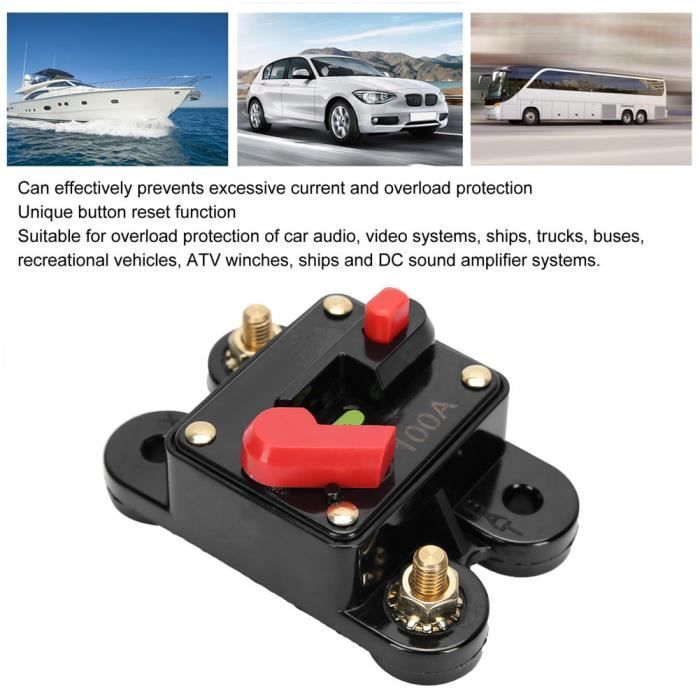 Disjoncteur de voiture - DIOCHE - 12 V - Étanche - Réinitialisation Disjoncteur étanche Bateau Camping-car Disjoncteur à Réinitialisation Manuelle Pour Moteurs De Pêche à La Protection Circuit 12v 48v Étanche IP67, il résiste à la poussière et à l'eau. Les bornes M10 en inox acceptent de gros câbles. Dimensions compactes : 89,2x48x45mm pour seulement 141g Spécification : simple, 30 A, convient pour la plage de tension DC12-48 V, avec double capuchon étanche, protection efficace de l'interface du terminal. 30A Disjoncteur Étanche avec Réinitialisation Manuelle 12-48V DC Fusiblespour Moteur Auto Voiture Marine Bateau Vélo Stéréo Audio, Avec œillets métalliques... Installation pratique : facile à installer, convient pour écran plat, mur, carrosserie et autres surfaces de montage, prêt à l'emploi. Matériau : matériau en alliage pour construire la structure conductrice interne, matériau de coque imperméable, avec conductivité, haute température et résistance à la pression, durable.