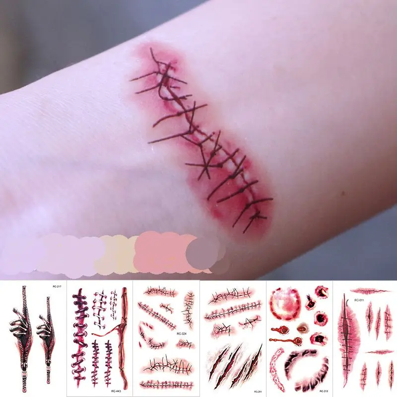 Autocollants Cicatrices Résistants Eau Maquillage Facile Autocollants Cicatrices & Sang Halloween - Tatouages Temporaires Réalistes - Enfants & Adultes - Effet Horreur Garanti Blessure Du Passé Tatoo Halloween Visage ✨ Caractéristiques principales : EFFET 3D ULTRA-RÉALISTE : Grâce à des détails méticuleusement reproduits (entailles profondes, sutures, égratignures et effets sanglants), ces autocollants créent une illusion parfaite sur la peau pour une peur garantie. Pour un effet encore plus réaliste, n'hésitez pas à ajouter un peu de faux sang autour de l'autocollant. Placez les entailles sur les pommettes, les griffures sur le cou ou les points de suture sur les bras pour compléter vos déguisements de zombie, vampire ou monstre. Passez à la vitesse supérieure pour Halloween et commandez dès aujourd'hui votre set d'autocollants effrayants ! Conçus pour un réalisme saisissant, ces fausses blessures sont parfaites pour Halloween, les soirées déguisées ou les shootings photo. Parfait pour être remarqué en soirée, lors de fêtes d'Halloween ou de séances photo. Associez-les à votre costume et maquillage préférés pour être la star de l'événement. 【Lot d'Autocollants Cicatrices 3D Ultra-Réalistes pour Halloween】 Ce set exclusif comprend 20 autocollants de fausses blessures au design hyper-détaillé. Leur formule sans latex et dermatologiquement testée les rend adaptés à toute la famille, y compris aux enfants à la peau sensible. Dans Une Petite Ville De La Manche, Les Tatouages Réalistes De Ce Jeune Seduisent 61207300 RÉSISTANTS ET CONFORTABLES : Fabriqués en matériau souple et résistant à l'eau, ils tiennent toute la soirée sans se décoller. LOT COMPLET ET ORGANISÉ : Le set comprend 20 autocollants différents de taille généreuse (environ 10x6 cm), organisés sur une plaque pour un choix rapide. Que vous soyez un zombie, un vampire ou une créature effrayante, ces accessoires rendront votre costume unique et mémorable. Plus qu'un simple accessoire, c'est un élément clé de vos souvenirs de fête. Vous y trouverez des entailles profondes aux bords irréguliers, des égratignures, des sutures grossières et des blessures sanglantes réalistes, agrémentées d'effets de gouttes de sang. Parfait pour Halloween, le carnaval, le théâtre ou les accessoires de cosplay. 【Accessoire Polyvalent pour des Souvenirs Mémorables】 Que ce soit pour une soirée Halloween, un shooting photo créatif ou une soirée film d'horreur en famille, ce set d'accessoires de déguisement rendra chaque moment inoubliable. Les 20 autocollants sont pré-découpés et organisés en grille 5x4 sur un support rouge foncé texturé pour un choix rapide et facile. POLYVALENT POUR TOUS LES PROJETS : C'est l'accessoire indispensable pour transformer n'importe quelle tenue en un costume d'horreur convaincant. Convient aux adultes et aux enfants, même à la peau sensible (avec une application correcte).