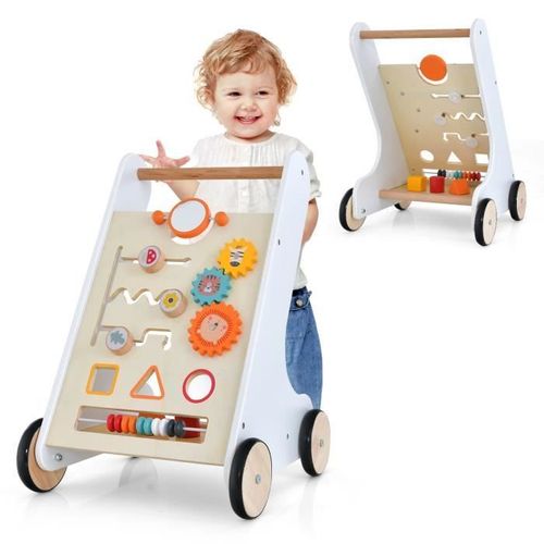 COSTWAY 6 en 1 Chariot de Marche en Bois avec Thème de Cuisine & 9 Poussette d'apprentissage 4 en 1 COSTWAY, assistant de marche avec hauteur réglable sur 3 niveaux, siège rembourré, volant & boîte à musique, voiture d'apprentissage transformable Trotteur Bébé En Bois Chariot De Marche En Bois Janod Sweet Cocoon - Trotteur Bébé Jouet Bébé éducatif Montessori Avec une structure robuste et large et un manche en bois sûr et lisse, les enfants peuvent apprendre à marcher en toute sécurité. 【Panneau d'Activités Amusant】Le trotteur marche bébé regorge de jouets attrayants, notamment un labyrinthe amusant, des engrenages rotatifs, un miroir réversible, des voitures sinueuses, un comptage de perles, une porte rabattable et un trieur de formes. Chariot de Marche en Bois avec Panneau de Jeu Trotteur Bébé avec Espace... De plus, le compartiment de rangement arrière peut garder les jouets à portée de main. 【Développement Complet】Conçu selon les principes Montessori, ce trotteur développe bien plus que de simples capacités motrices. 【Structure Robuste】Conçu avec 4 roues recouvertes de caoutchouc antidérapant et silencieux, le trotteur bébé dispose d'une structure pyramidale à base large pour une grande stabilité. Il améliore la dextérité et la coordination œil-main grâce à une riche variété d'activités.