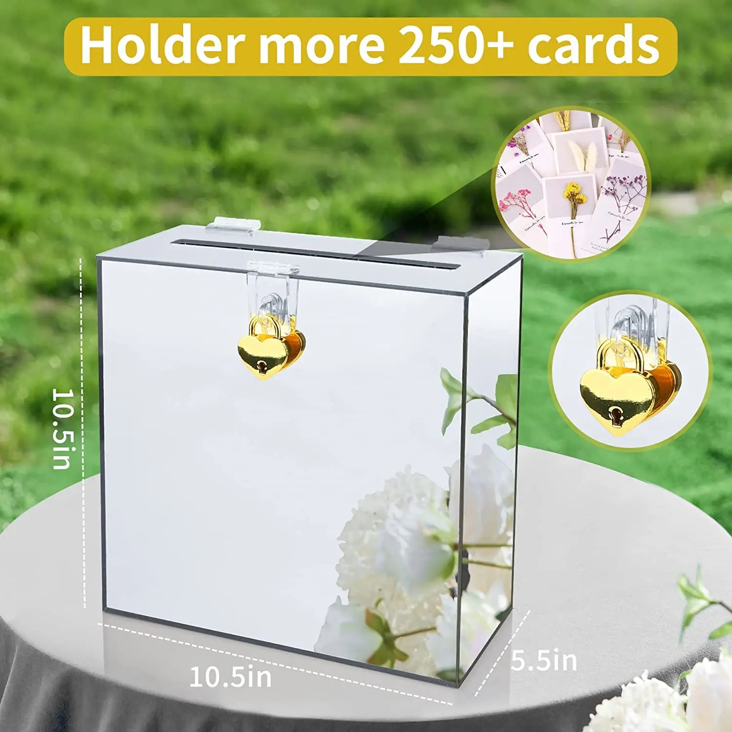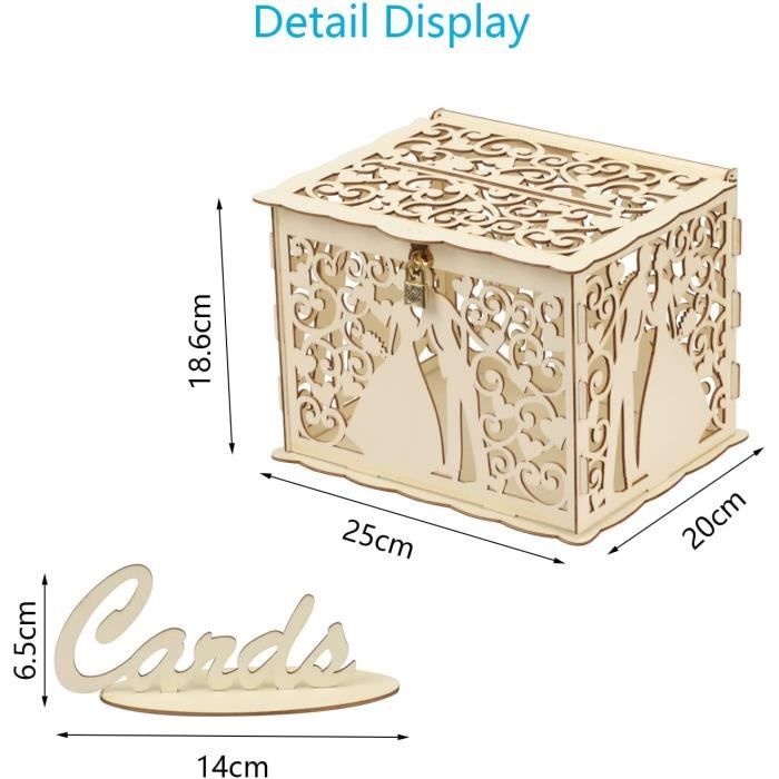 GUDELAK Boîte à cartes de ariage avec serrure - Boîte aux lettres Ces élégants sont fabriqués dans un style rustique et bohème. Vous pouvez utiliser cette boîte à cartes comme espace de rangement pour de l'argent ou offrir autre chose. Boîte postale de mariage Boho, tirelire de mariage, décor de mariage rustique, boîte à cartes de mariage personnalisée, boîte à cartes en bois et acrylique Boite A Enveloppe Mariage Boîte À Cartes De Mariage Avec 10 Cartes, Boîte À Cartes Cadeaux Boîte Carton Pliable Baby Shower Fête Spécification:Couleur : indiqué., Taille: 22*22 cm (8,66*8,66 pouces)., Matériau : carton. 【Facile à assembler】 : cette boîte enveloppe a un design pliable, vous pouvez déplier ou plier selon vos besoins, l'assemblage peut être facilement complété par des opérations simples, vous permettant de vous concentrer davantage sur l'activité elle-même. Boîte à cartes de mariage, boîte à cartes de remise des diplômes, boîte... Le forfait comprend : 1 boîte de cartes de mariage, 10 cartes de vœux. boîte à cartes de mariage est un excellent choix pour collectionner des cartes de vœux, des cartes-cadeaux, des lettres des notes de souhaits de votre bien-aimé. boîte à cartes de mariage de grande capacité peut accueillir diverses cartes de bénédiction, cartes de suggestions cartes cadeaux, rendant votre fête plus exquise. 【Taille】 : boîte à cartes de mariage mesure 8,66 x 8,66 pouces un emplacement pour carte sur le.