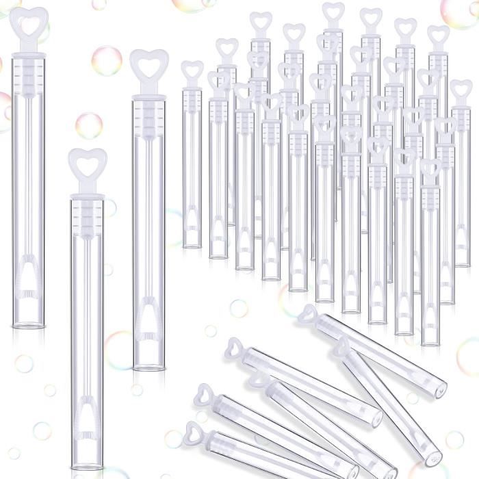 Bouteille de savon à bulles colorées, 100/50 pièces, baguette en forme de cœur d'amour, Tube vide, cadeaux de mariage pour invités, décoration de fête d'anniversaire, jouets pour enfants Informations sur les marchandises Baguettes à bulles pour enfants. Bulles De Savon Mariage 80 Set Tubes à Bulles De Mariage Avec Autocollants De Feuilles Baguette à Bulles De Coeur Flacon Tubes à Bulles Vides Forme Cœur - un pour les enfants pour les d'été et peut . Les tubes à bulle mariage sont un accessoire ludique et festif pour égayer votre cérémonie. Que ce soit pour une sortie d'église, une séance photo ou simplement pour amuser les invités, les tubes à bulle ajoutent une touche de magie et de légèreté à votre événement Machine à bulles,Pricess no Box--Baguettes À Bulles Pour Filles... Baguettes à bulles en forme de cœur vide : et pour les fêtes, les réunions de famille, les célébrations, les activités intérieures et extérieures, de fête à bulles pour enfants peuvent rechargées, pour une utilisation à , créant plus de rires avec des bulles. Baguette à bulles vide : vous pouvez jouer à toutes les occasions, aire de jeux, parc, à la plage, , fêtes, mariage, baguette à bulles pour enfants -Facile à remplir et à réappliquer, suffit de remplir flacon, puis de remplir de Bubble Wand Toys. Baguette à bulles d'eau Cette bulle vide est fabriquée pour une utilisation . des packages 18 x bouteilles vides pour baguette à bulles Caractéristiques -Taille : 10,10 x 1,10 x 1,10 cm/3,97 x 0,43 x 0,43 -Couleur : baguettes à -Informations sur produit : bouteille vide -Matériau : Bouteille à bulles rechargeable - type et la taille compacte sont pour transport en extérieur baguette à bulles rechargeable.