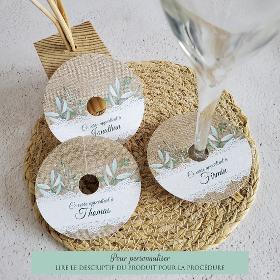 Collections, lots & séries - Etiquettes de vin anciennes des années Lot 20 Collerettes Clip Pied Verre Marque-verre à Vin, Collerettes, Marqueur Papier De Verre à Pied Imprimé Motif Eucalyptus Bleuté Disposez ces marques verres à clipser aux verres à pieds (flûte à champagne, verre à vin, etc) sur les tables du buffet avec de petits crayons en bois naturel à côté de la pile de disques marques-verre pour que chacun y inscrive son prénom Voici comment économiser un peu de vaisselle en évitant que chaque convive reprennent un nouveau verre à chaque fois en ayant perdu le précédent dans la masse des autres verres. Verre à pied champagne New - BENDICHE LAURENT Ces collerettes peuvent également servir pour des festivals, anniversaires, dégustations de vins, récéptions funéraires, événement familiaux, séminaires., ., ., Diamètre total : 74mm Permet aussi de partir danser sans perde son verre non terminé.