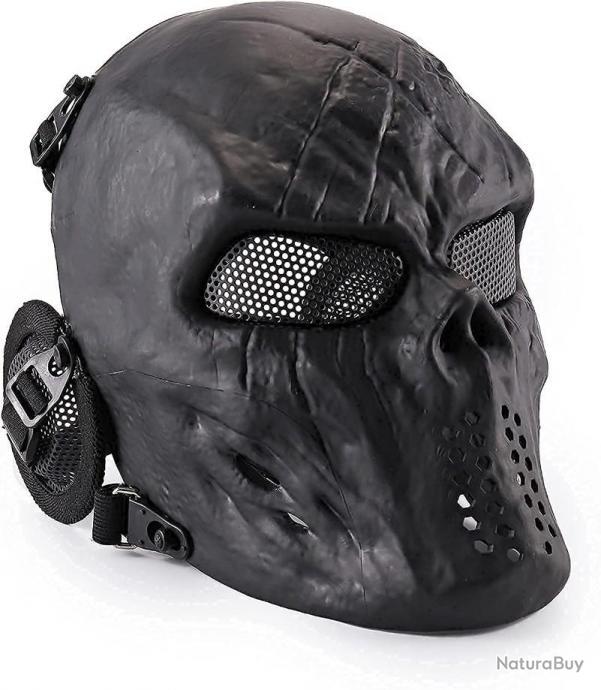 Masque Tactique Paintball Masque A Gaz Halloween Intégral Tactique Paintball Crâne Masque Militaire De Camouflage Protection Airsoft Masque ANSI Z80.3 800 FPS Convient pour la circonférence de la tête: 52-66cm Équipement compatible: les utilisateurs peuvent l'utiliser avec des équipements tels que des casques tactiques ou des écouteurs tactiques PJ Type Casque tactique rapide et masque de crâne Airsoft En termes de taille, la conception du pont nasal / cavité buccale du masque peut fournir suffisamment d'espace et il n'y a pas de points de pression sur le visage de l'utilisateur pour faciliter la respiration et une bonne ventilation (conception d'un grand nombre de trous métalliques) tactique crâne masque art pour espionnage thèmes dans visuel narration... Le masque a réussi le test ANSI Z80., 3 Drop Ball et a une résistance aux chocs allant jusqu'à 800 FPS à une température de -10 degrés Celsius à 42 degrés Celsius. Il réduit également l'influence des forces externes sur l'orbite, est confortable et résistant aux chocs Deux modes de port: sur le casque ou suspendu à la tête. Un matériau en fibre de nylon de haute qualité et des lentilles grises transparentes épaisses peuvent réduire l'intensité lumineuse et irriter les yeux des utilisateurs