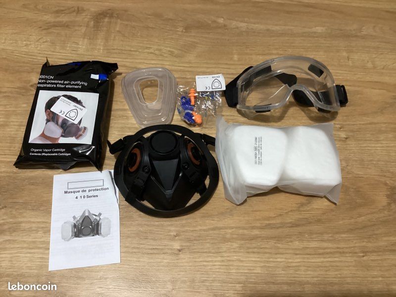 Masque Respiratoire Réutilisable Masque De Protection, Masque De Protection Respiratoire Réutilisable Masque Peinture Masque à Gaz Professionnel Masque De Peinture Au Charbon Actif Respirateur Avec 2 Filtres Anti Poussiere Pesticides Formaldehyde Laque Coloree 87288576 Masque de protection visage, pour les voix respiratoires et les yeux. Pendant les travaux de peinture, de ponçage ou encore de nettoyage il est recommandé... 【Sécurité des matériaux】Notre demi-masque est fabriqué en silicone de haute qualité, non toxique, doux, confortable, durable, sûr et sain. 【Filtration haute efficacité】Le masque facial adopte un système de double filtration qui peut efficacement obstruer les vapeurs/gaz organiques, la fumée, le pollen, la poussière et d'autres particules dans l'air. C'est l'appareil de protection respiratoire idéal pour votre vie et votre travail. Notre demi-masque est fabriqué en silicone de haute qualité, non toxique, doux, confortable, durable, sûr et sain. 【Sangle réglable et confortable】 Le demi-masque et les lunettes de sécurité sont équipés de bandeaux élastiques qui s'ajustent facilement, ce qui convient à la plupart des tailles de tête. il peut empêcher les particules de poussière de pénétrer dans les voies respiratoires. 【Tout ce dont vous avez besoin】 Le demi-masque respiratoire réutilisable offre aux utilisateurs une protection complète tout en protégeant le visage et les yeux. Filtration haute efficacité]Le masque facial adopte un système de double filtration qui peut efficacement obstruer les vapeurs/gaz organiques, la fumée, le pollen, la poussière et d'autres particules dans l'air. C'est l'appareil de protection respiratoire idéal pour votre vie et votre travail