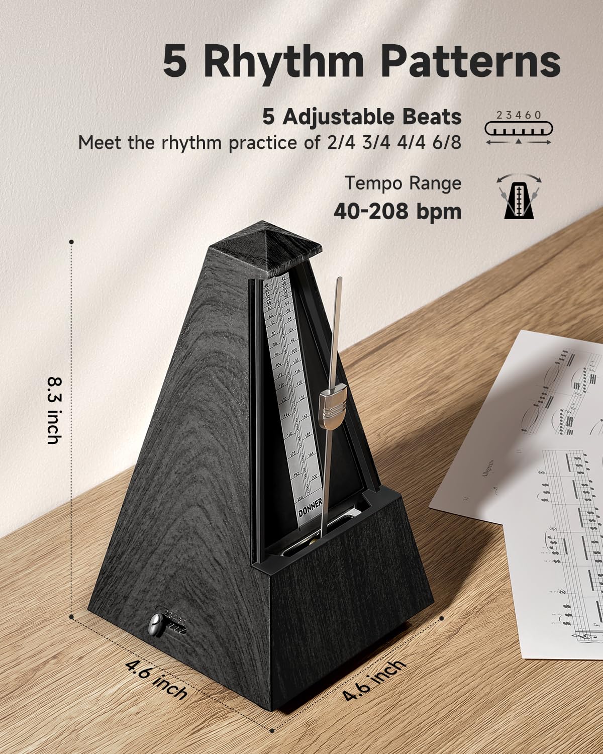 Métronome Mécanique Bois Massif Métronome En Bois Massif Fabriqué à La Main – Design Vintage Métronome Violon Vintage Mouvement Laiton Cadeau Musicien métronome musical - Bois - Milieu du XXe siècle Logo du 40e anniversaire avec un design inspiré du vintage Featuri... Doté d'une sculpture vintage inspirée du violon, d'accents plaqués or 24 carats et d'un mouvement mécanique en laiton de précision, il offre une précision rythmique de qualité studio (40-208 BPM) avec des battements chauds et résonnants, parfait pour le piano, le violon ou la pratique orchestrale. Conçu pour durer longtemps avec une base lestée en noyer et un rembourrage en feutre antidérapant, ce métronome sans batterie assure la stabilité sur n'importe quelle surface. Patrimoine de violon, savoir-faire inégalé : méticuleusement fabriqué à la main par des maîtres luthiers en utilisant des techniques traditionnelles de fabrication de violon, ce métronome en bois massif dispose des mêmes bois de tonalité de qualité supérieure et de la laque polie à la main que les violons fins, offrant une pièce intemporelle de qualité héritage pour les musiciens exigeants. Améliorez votre voyage musical avec ce métronome en bois massif fabriqué à la main, magistralement conçu par des luthiers en utilisant des techniques traditionnelles de fabrication de violon. Design vintage élégant avec des accents dorés : inspiré des rouleaux de violon classiques, la sculpture complexe de la tête de violon et la bordure plaquée or 24 carats créent une superbe pièce maîtresse visuelle, parfaite pour les studios de piano, les salles de classe de musique ou comme décoration de luxe dans les intérieurs sophistiqués. Le rythme analogique apaisant élimine les sons numériques agressifs, idéal pour les sessions d'entraînement ciblées, les studios d'enregistrement ou les spectacles en direct. Cadeau de luxe pour les amateurs de musique : présenté dans un coffret cadeau sophistiqué avec doublure protectrice en peluche et un certificat d'authenticité, ce métronome artisanal transcende la fonctionnalité. Bnc Swtooth en chêne nglis mssif, conçu et fbriqué à l min pr...