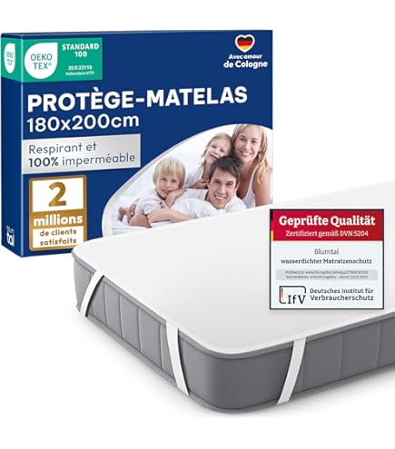 Pack 2 Housses Anti-acarien Protection Matelas 160x200cm GRT Set 2 Protège-Matelas 160x200cm Imperméable TPU - Jusqu'à 40cm Épaisseur - Housse Lavable Anti-Humidité Housse Lavable Machine Housse Matelas Anti-humidité TPU Matelas 100 x 200 EPEDA Podium 2 - 100x200cm Pas Cher Matelas 120x200 - Épaisseur 21 cm - Matelas à ressorts ensachés... HOUSSE DE MATELAS IMPERMÉABLE ET LAVABLE - RESPIRANTE ET SILENCIEUSE 100% Imperméable : Le protège-matelas dispose d'une couche TPU de haute qualité, entièrement imperméable, qui absorbe rapidement tout liquide. En même temps, il laisse la peau respirer facilement, réduit la formation de transpiration en été et garde le corps au chaud en hiver. PROTECTEUR DE MATELAS IMPERMÉABLE - DOUX ET CONFORTABLE Certifié OEKO-TEX : Nos protège-matelas sont testés pour les substances nocives, garantissant ainsi que vous êtes protégé contre l'humidité et la saleté. La couche supérieure en microfibre de haute qualité permet de réduire les bruits gênants du matelas et vous offre une meilleure expérience de sommeil. Peu importe vos mouvements dans le lit, ce protège-matelas reste bien en place. Le design en pack de deux permet un échange rapide en cas d'accident ou de fuite, afin de garder votre lit toujours frais. PROTECTEUR DE MATELAS IMPERMÉABLE - DOUX ET CONFORTABLE Facile à Entretenir : Ce protège-matelas rend le nettoyage de votre matelas un jeu d'enfant