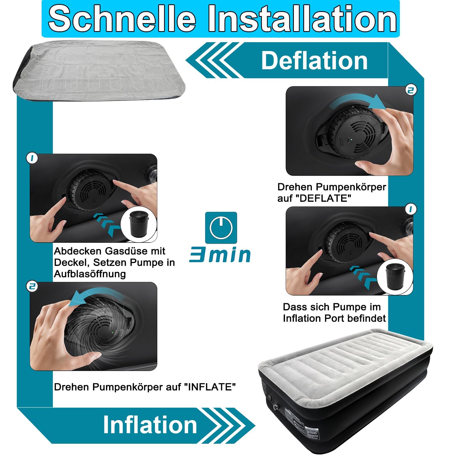 Attention Ne laissez pas l'eau pénétrer dans la pompe à air pendant le gonflage et la recharge. S'adapte parfaitement à la courbure de la colonne vertébrale. Matelas Camping Gonflable 195x152cm Matelas Gonflables LARS360 Matelas Pneumatique, Autogonflant, Matelas Gonflable Avec Pompe à Air Et Sac De Matelas Gonflable 2 Personnes Electrique Lit Pliant 2 Personnes C'est le meilleur choix pour tous ceux qui aiment le camping et ont besoin de dormir. Facile à utiliser : un bouton pour allumer le gonflage/dégonflage automatique. Gonflage rapide, environ 3 minutes. Tissu floqué doux pour la peau avec tissu de surface floqué. Ne pas toucher l'entrée d'air pendant le gonflage. Taille pliée, lit simple : 40 x 14 x 30 cm, 5,5 kg, lit double : 43 x 15 x 30 cm, 8,5 kg. Remarque : Ne pas utiliser comme extincteur de pique-nique ou comme sèche-cheveux. Matériaux de haute qualité Ce matelas est fabriqué en PVC anti-perforation qui empêche la surface de se fissurer dans le froid. Construction ergonomique Capacité de charge maximale de 300 kg, le support multipoint intelligent répartit la pression uniformément sur le corps. La surface est en tissu floqué, agréable pour la peau. Matériau léger, facile à transporter et à ranger, ne prend pas de place, beaucoup moins d'espace qu'un matelas standard. Données techniques Taille unique Dimensions : 187 x 90 x 46 cm (L x P x H) Matériau : PVC, côtés floqués, ABS Couleurs : noir + gris Taille double Dimensions : 195 x 152 x 46 cm (L x P x H) Matériau : PVC, côtés floqués, ABS Couleurs : noir + gris Contient 3 buses d'air standard. Matériau très résistant pour une structure stable. Masque réanimateur avec ballon auto-gonflant et pompe à main... Le matelas peut être utilisé directement sans draps. Il est très durable et robuste. Matelas gonflable mobile avec de nombreuses possibilités d'utilisation. Sauyet Tapis de camping auto-gonflant, tapis de couchage gonflable avec Le matelas peut être utilisé directement sans drap. La partie supérieure est recouverte d'un tissu floqué agréable à la peau pour un confort maximal, quelle que soit la position de sommeil. Le matériau silencieux garantit un sommeil paisible. Vous êtes sur le bon comparateur de prix si vous cherchez où acheter LARS360 Matelas pneumatique, autogonflant, matelas gonflable avec pomp... au meilleur prix en France au rayon Matelas gonflables et lits d'appoint. Pour consulter un manuel, une notice, un mode d'emploi et les avis de ce produit, consultez le site d'un des revendeurs Ce matelas gonflable est fabriqué en PVC anti-crevaison qui empêche la surface de se fissurer dans le froid, très durable et robuste. Le nouveau matelas pneumatique LARS360 offre une excellente expérience de sommeil. Description de la pompe à air : Dimensions du produit : environ 13x8,4x8,4cm Poids du produit : environ 0,45 kg Tension et courant : DC5V, environ 8A Pression d'air à pleine charge : environ 0,45 psi Matériau : boîtier en PS Débit maximal : 450 l/min Niveau sonore : <85 dB à un mètre de distance Que ce soit comme lit gonflable pour les invités de nuit, comme matelas de voyage ou comme matelas gonflable d'extérieur pour le camping.
