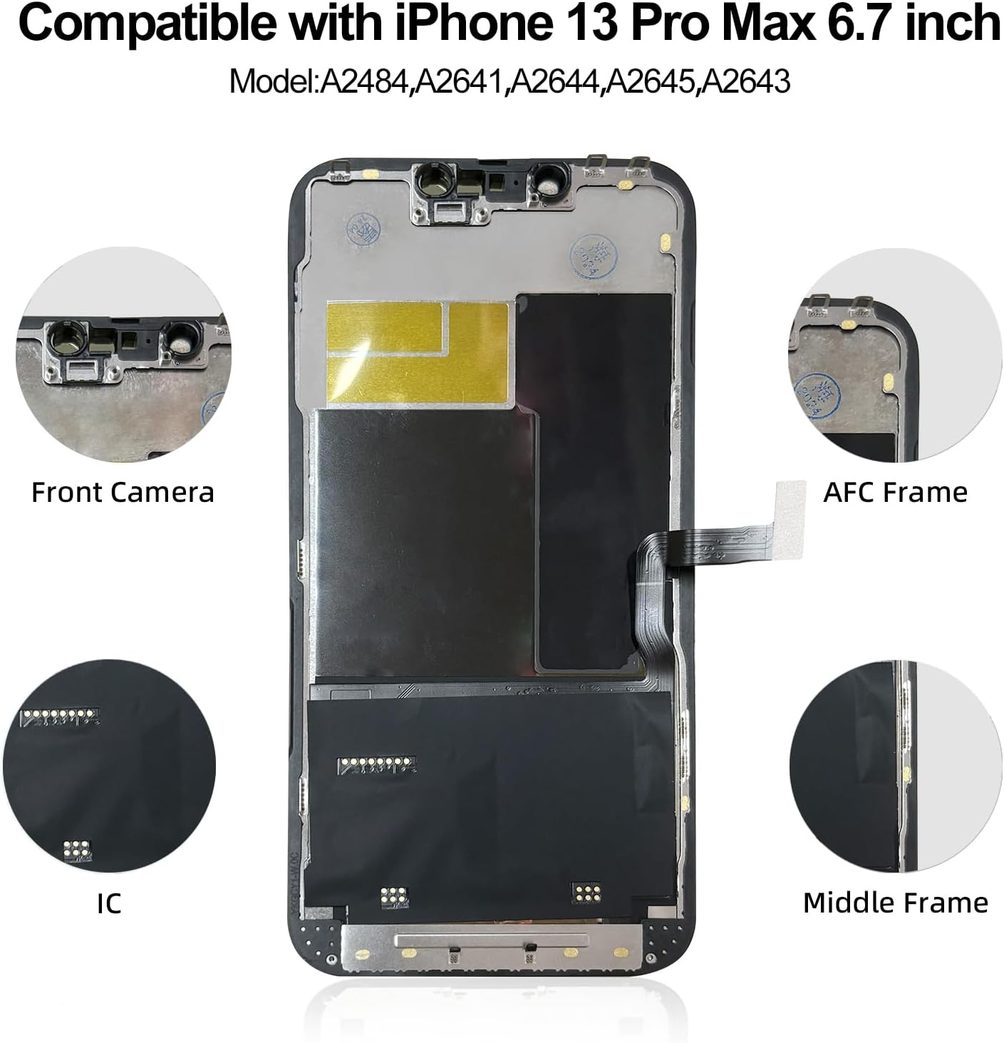 Atwist Instructions de remplacement d'écran LCD de haute qualité pour iPhone 13 Pro Max LCD Display I. 【Garantie de qualité】 : Écran de haute qualité spécialement conçu pour le iPhone 13 Pro Max écran, doté d'une luminosité élevée et d'une fonction tactile 3D très sensible. 【Adaptation précise】 : Ce remplacement d'écran LCD ne convient que pour le iPhone 13 Pro Max produit en Incell (modèles : A2643, A2484, A2641, A2644, A2645). Liste des éléments de la livraison - 1 remplacement d'écran pour iPhone 13 Pro Max - 1 ensemble d'outils d'installation professionnels En même temps, nous offrons une garantie de qualité à long terme et un service après-vente professionnel pour que vous puissiez acheter sans inquiétude. Chaque écran est soumis à des tests rigoureux avant l'expédition pour s'assurer qu'il fonctionnera stablement sur votre appareil une fois installé et offrira un effet visuel clair et détaillé. Remplacement écran OLED 6,7 Pouces ARSSLY OLED LCD Écran Pour IPhone 13 Pro Max LCD Display Pour IPhone 13 Pro Max A2484 A2641 A2644 A2645 A2643 6,7" Ecran Replacement Écran Tactile Digitizer Assemblée Avec Réparation Set, Noir LCD IPhone A2643 A2484 OLED FHD Display für iPhone 13 Pro Max LCD Bildschirm SCHWARZ Black G 【Qualité exceptionnelle】 : Écran de haute qualité spécialement conçu pour le iPhone 13 Pro Max LCD, doté d'une luminosité élevée et d'une fonction tactile 3D très sensible. Modèles compatibles Ce kit de remplacement d'écran est parfaitement compatible avec le pour iPhone 13 Pro Max de 6,7 pouces, avec les modèles A2643, A2484, A2641, A2644, A2645., Veuillez vérifier le modèle de votre téléphone portable avant d'acheter pour vous assurer d'une adaptation précise., II. Nous vous recommandons également de chercher des tutoriels sur YouTube avant l'installation. Original Écran pour iPhone | iPhone Accessoires – Tagged iPhone 13 Pro... Si vous n'êtes pas sûr du modèle compatible, vous pouvez nous contacter via Amazon et nous vous recommanderons le produit le plus approprié. Nous offrons un service professionnel de remplacement d'écran en service post-vente. La fonctionnalité du produit a été vérifiée avant l'expédition, vous pouvez donc installer en toute confiance. DIGI4U Écran pour iPhone 13 Pro Max Soft OLED 120 Hz 6,7 Écran de rechange True Tone FHD COP Display Digitizer Assembly avec outil de réparation, film de... Il est fortement recommandé de regarder les vidéos avant l'installation pour éviter tout dommage causé par une utilisation incorrecte. Nous vous fournirons une solution en moins de 24 heures. Veuillez vérifier le modèle de votre téléphone avant d'acheter pour vous assurer qu'il est compatible et éviter tout problème d'installation dû au modèle incorrect.
