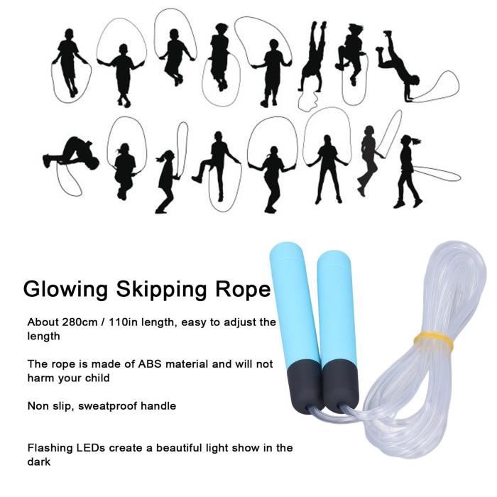 En ajustant la boucle, vous pouvez rapidement ajuster la longueur., 5., Que vous soyez une femme, un homme, un adulte, un débutant ou une personne expérimentée, vous pouvez commencer à sauter à la corde à tout moment, n'importe où. CORDE A SAUTER,Blue-China--Corde de saut à la maison lumineuse Réglage simple de la longueur. Corde A Sauter Boxe Croyez Activation Canada Meilleur Corde à Sauter Sans Fil Intense Symétrie Décod Saut à La Corde Fitness Avec Poids Convient à toutes les hauteurs. Couleur : rose/bleu/vert., Longue corde : 2,8 m. Sonew Corde à sauter incandescente LED Corde à sauter lumineuse 2,8... Il est simple et efficace, et peut vous aider à rester en forme, perdre du poids et augmenter l'endurance Design personnalisé, lumineux, cool et Que vous soyez une femme, un homme, un adulte, un débutant ou une personne expérimentée, vous pouvez commencer à sauter à la corde à tout moment, n'importe où Fonctionne avec 4 piles AA (non fournies). Scène applicable : équipement de fitness, corps de fitness. La corde à sauter portante adopte un design audacieux et plus lourd. Caractéristiques : 1., Design personnalisé, lumineux, cool et 2., La corde à sauter portante adopte un design audacieux et plus lourd. En ajustant la boucle, vous pouvez rapidement ajuster la longueur.