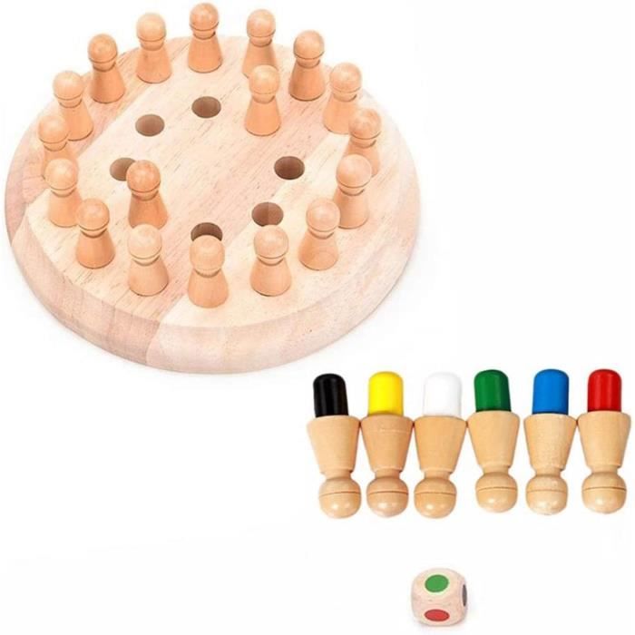 𝐀𝐕𝐄𝐂 𝟒 𝐅𝐈𝐆𝐔𝐑𝐈𝐍𝐄𝐒 𝐃𝐄 𝐑𝐄𝐂𝐇𝐀𝐍𝐆𝐄 (𝟓 𝐂𝐌) – Vous recevrez avec le jeu de société 4 figurines neutres de remplacement que vous pourrez peindre vous-même dans la couleur correspondante. Grâce au grand plateau de jeu rabattable, les joueurs qui ont des difficultés à manier les pions peuvent plus facilement les utiliser. Mémorisez bien où se trouve chaque couleur ! Si vous tirez un pion de la mauvaise couleur, il est replacé sur le plateau et c'est au joueur suivant de jouer. 𝐏𝐎𝐔𝐑 𝐏𝐄𝐓𝐈𝐓𝐒 & 𝐆𝐑𝐀𝐍𝐃𝐒 – Le jeu de mémoire pour tous les âges à partir de 3 ans, que l'on soit jeune ou vieux ! Toyfel échecs de mémoire Magnus Le plaisir de jouer pour les jeunes et les moins jeunes Un jeu passionnant pour tous les âges ! Les pièces de jeu ont un toucher particulièrement agréable grâce à leurs surfaces arrondies et lisses. Pour un plaisir de jeu particulièrement long ! Caractéristiques 1x plateau de jeu pliable (⌀ 18cm) , 1x dé en bois Jouez à deux ou jusqu'à 6 personnes les unes contre les autres. Échecs de Mémoire Toyfel Magnus Montessori en Bois ø18 cm pour Adultes... 𝐄𝐂𝐇𝐄𝐂𝐒 𝐃𝐄 𝐌𝐄𝐌𝐎𝐈𝐑𝐄 (⌀ 𝟏𝟖 𝐂𝐌) – Le jeu de réflexion comprend 1x plateau de jeu (⌀ 18 cm), 1x dé en bois et 28x pions (5cm de haut) + un sac en tissu. Mettez votre mémoire à l'épreuve avec notre Memory Chess Magnus ! Que ce soit pour les familles, les enfants, les adultes ou les seniors : grâce à la possibilité de différentes variantes de jeu, ce jeu de société éducatif reste toujours captivant ! 28x grandes pièces de jeu (5 cm de hauteur) ainsi qu' , 1x sac en tissu En bois de haute qualité Fabriqué en bois massif robuste et de haute qualité, le jeu d'échecs d'extérieur est particulièrement durable et reste un grand divertissement pour toutes les générations. Échecs de Mémoire pour Enfant, Jeu d'échecs de Mémoire, Jeu Échec Bois Logique,Jeux de Mémoire en Bois,Jeu de Societe Enfant,Jouets Éducatifs Couleur Cognitive,Parent-Enfant Interaction Jouet Amusant | Votre wishlist sur Il est donc particulièrement amusant lors des anniversaires d'enfants, des fêtes, des voyages ou des soirées de jeu en famille ou entre amis. Jeu de mémoire avec les petites bêtes Vous recevrez également 4 figurines neutres de remplacement. Jeu Mémoire Bois Memory Simon Jeu D'échecs à Mémoire Pour Enfants - Jeu De Mémoire En Bois - Entraîne L'attention Et La Pensée Logique à Prix Le Cochon Qui Rit Jeu Original Jeu Société Bois Motricité Logique Pour que vous puissiez profiter particulièrement longtemps du Memory Chess, des règles de jeu alternatives peuvent également être appliquées. Des règles de jeu simples Répartissez les pions au hasard sur le plateau de jeu. 4 figurines de rechange incluses Ce jeu de mémoire avec twist stimule facilement votre mémoire et votre coordination en jouant. 𝐒𝐓𝐈𝐌𝐔𝐋𝐄 𝐋𝐀 𝐌𝐎𝐓𝐑𝐈𝐂𝐈𝐓𝐄 𝐄𝐓 𝐋𝐀 𝐋𝐎𝐆𝐈𝐐𝐔𝐄 – Le jeu de mémoire ne stimule pas seulement la concentration et la mémoire, mais aussi la coordination et la motricité. Les figurines du jeu de mémoire Montessori se distinguent par leur toucher agréable et leur hauteur d'environ 5 cm.