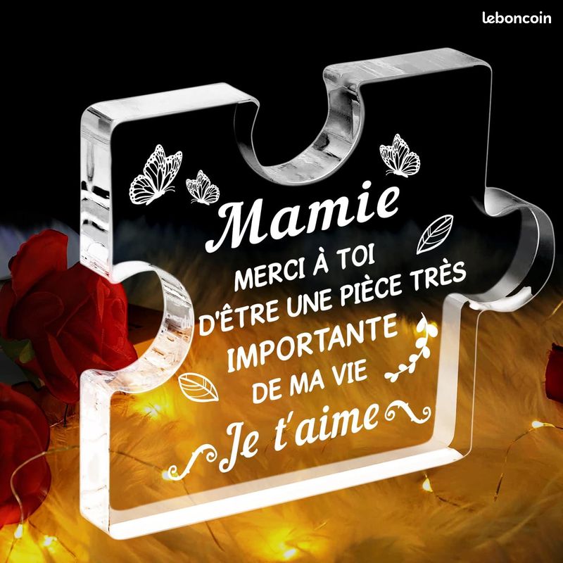 Puzzle Acrylique Gravé Pour Grand Mère Cadeaux Pour Grand Meres FANAOREN , Cadeau Anniversaire Mamie, Gravure Acrylique Bloc Puzzle, Cadeau Grand-mère, Cadeaux Noël Pour Mamie, Cadeau Fete Des Grands Meres, Original Cadeau Mamie Cadeau Mere Yamonic Cadeau Mamie, LED Veilleuse en Acrylique Cadeau Anniversaire Cadeau aie Anniversaire, Idee Cadeau Fete Des Grand ere Cadeau aie... Cadeau grand-mere: Une petite surprise pour grand-Mère,un gravure acrylique avec La vie est plus belle avec une mamie comme toi. Cette plaque en acrylique crée une atmosphère chaleureuse, sophistiquée et compacte avec un style unique. Cadeau mamie: L'acrylique de remerciement pratique et spécial convient pour la fête des papy, Noël, Halloween, Thanksgiving, anniversaire et autres occasions pour les papy. petits cadeaux pour grand-Mère Cadeau de Noël de la mamie cadeau grand mere porte clef meilleure grand-Mère cadeau mamie idee Cadeau de Fête des Mères pour grand-Mère Cadeau pour la Fête des grands-Mères Petits cadeaux amusants Le acryliques de gratitude est un cadeaux personnalisés pour mamie cadeau grands-parents cadeau mamie anniversaire Cadeau de Thanksgiving pour mamie Cadeau de Fête des Mères pour grand-Mère Petits cadeaux amusants pour grand-Mère petits cadeaux pour grand-Mère Cadeau de Noël de la mamie Idee cadeau pour grand mere: Es décorations acryliques pour papy sont bien faites et fabriquées en acrylique, qui n'est pas susceptible de provoquer des allergies, vous pouvez donc être sûr de pouvoir les utiliser. SERVICE FIABLE : nous vous fournissons le service après-vente le plus attentionné, si vous avez des questions sur nos produits et services, n'hésitez pas à nous écrire, nous vous donnerons une réponse satisfaisante. Cette plaque en acrylique crée une atmosphère chaleureuse, sophistiquée et compacte avec un style unique. Il constitue un excellent moyen de décorer votre maison et s'intègre parfaitement à votre chambre, votre salon, votre salle à manger ou toute autre table de votre maison