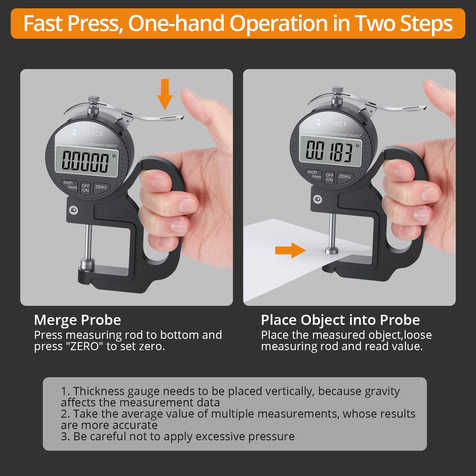 Comparateur Digital LCD Neoteck 0-25.4mm/0.001mm Jauge D'Epaisseur Numérique Mesure Thickness Digital Micromètre Eléctrique Mm/Pouce Avec Affichage LCD à Cristaux Liquides Tissu Cuir Papier-Gris Instrument Mécanique Haute Résolution LCD Jauge de profondeur digitale jusqu'à 200 mm Limit DGA200 | Contact TORROS Outil De Précision 0.001mm Micromètre Digital Neoteck 0-25mm Idéal pour un usage direct en usine ou laboratoire Neoteck DTI Coparateur Nuérique 0.01/0.0005/1/128'' Indicateur de... Design Solide en Alliage d’Aluminium - Son boîtier robuste en alliage métallique léger assure une excellente stabilité de mesure, résiste aux chocs et à l’usage intensif. Parfait pour les techniciens, bricoleurs et métrologues Conversion mm/pouce Instantanée - Ce comparateur digital permet une commutation facile entre les unités mm et pouce, ce qui en fait un outil de mesure électronique universel adapté aux normes industrielles françaises et internationales 25., 4mm/0., 001mm Comparateur Numérique - Jauge de Précision Digitale à Affichage LCD Haute Résolution 0., 00005 Conversion mm/pouce Zéro Instantané Outil de Mesure Électronique pour Atelier, Usine, Laboratoire