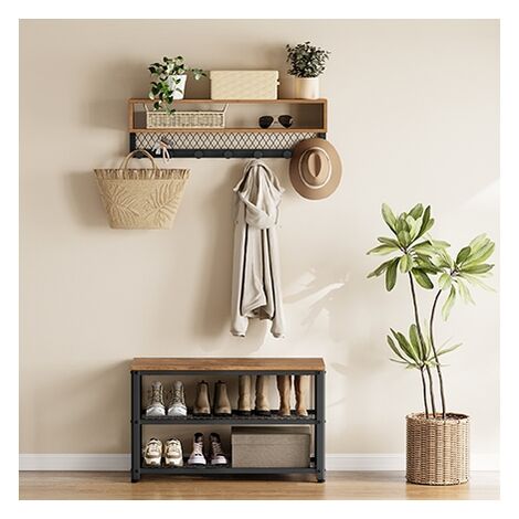 Vestiaire d'entrée industriel meuble industriel sur mesure bois métal... [Construction robuste] Construit avec une structure en métal, ce porte-manteau avec rangement à chaussures est doté de lattes en V inversé pour une stabilité accrue et de patins réglables pour un meilleur équilibre sur les surfaces irrégulières. [Assemblage facile] Ce porte-manteau industriel est fourni avec des instructions claires et étape par étape, ainsi que tous les accessoires nécessaires pour une installation facile. Meuble Couloir Pratique Crochets Amovibles Meuble D'entrée Vestiaire Banc Vestiaire D'entrée Ikea [Vaste espace de rangement pour chaussures] Avec deux compartiments longs et un compartiment haut, ce porte-manteau avec banc et porte-manteau peut accueillir une variété de chaussures, des bottes de pluie aux baskets, assurant un ajustement parfait pour toutes vos chaussures de tous les jours. Découvrez notre Meuble d'Entrée Avec Banc, un élément indispensable pour organiser votre couloir ou votre chambre avec style et praticité. Conçu dans un élégant style industriel, ce meuble combine un marron rustique chaleureux avec des accents noirs modernes, apportant une touche tendance et authentique à votre intérieur [Porte-manteau polyvalent] Équipé de huit crochets amovibles, ce banc d'entrée en bois avec rangement à chaussures vous permet de créer vous-même un espace de rangement pour manteaux, chapeaux et sacs, pour un vestibule ou une entrée ordonnée et fonctionnelle. Vestiaire d'entrée, Porte-manteau mural +Banc à chaussures, Marron Rustique et Noir