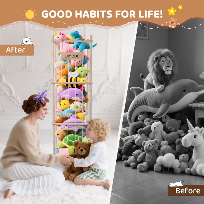 Rangement pour Peluches, 146 * 42 * 32CM en Bois Massif Circuit Voiture Enfant 100 Pièces Avec Table D'activités, Tiroir à... Meuble Rangement Jouet Meuble De Rangement Rangement Pour Peluches, 138x41x41cm Chambre Enfant Avec Roulettes Pivotantes Verrouillables à 360° Pour Chambre De Bébé, Salon, Chambre D'enfant Rangement Peluche Meuble Rangement Jouets Bois Pin Roulettes 3 étagères 【Conception Spacieuse à Trois Couches - Grande Capacité, Facile à Ranger】 : cette boîte de rangement pour jouets en peluche en bois adopte une structure à trois couches d'une taille de 138x41x41cm. Les freins peuvent assurer la stabilité lors du stationnement et empêcher le roulement accidentel, améliorant considérablement la sécurité des jeux des enfants. Rangement pour Peluches, 138x40x40CM en Bois Massif, Rotatif à 360° et Verrouillable Range Peluche Idéal pour Le Salon, la Chambre et la Chambre d'enfant... Chaque roue est équipée d'un système de freinage puissant. En même temps, en relâchant le verrou de frein, le support à jouets peut être rapidement déplacé dans n'importe quelle pièce. 【Facile à Assembler, large gamme d'utilisations】 : notre étagère de rangement pour jouets est équipée d'accessoires complets et d'instructions d'installation détaillées, le processus d'installation est simple et pratique, aucun outil compliqué ni compétence professionnelle n'est requis. 【Conception Adaptée aux Enfants - Maintenez la sécurité】 : cette range peluche enfant est équipée d'un connecteur ferme et d'une bande élastique (l'élasticité de la corde est réglable lors de l'installation), ce qui est pratique pour prendre et mettre, et les bords du support de rangement pour jouets en peluche sont soigneusement polis et arrondis pour éviter les bords tranchants, assurant un environnement sûr pour vos enfants.
