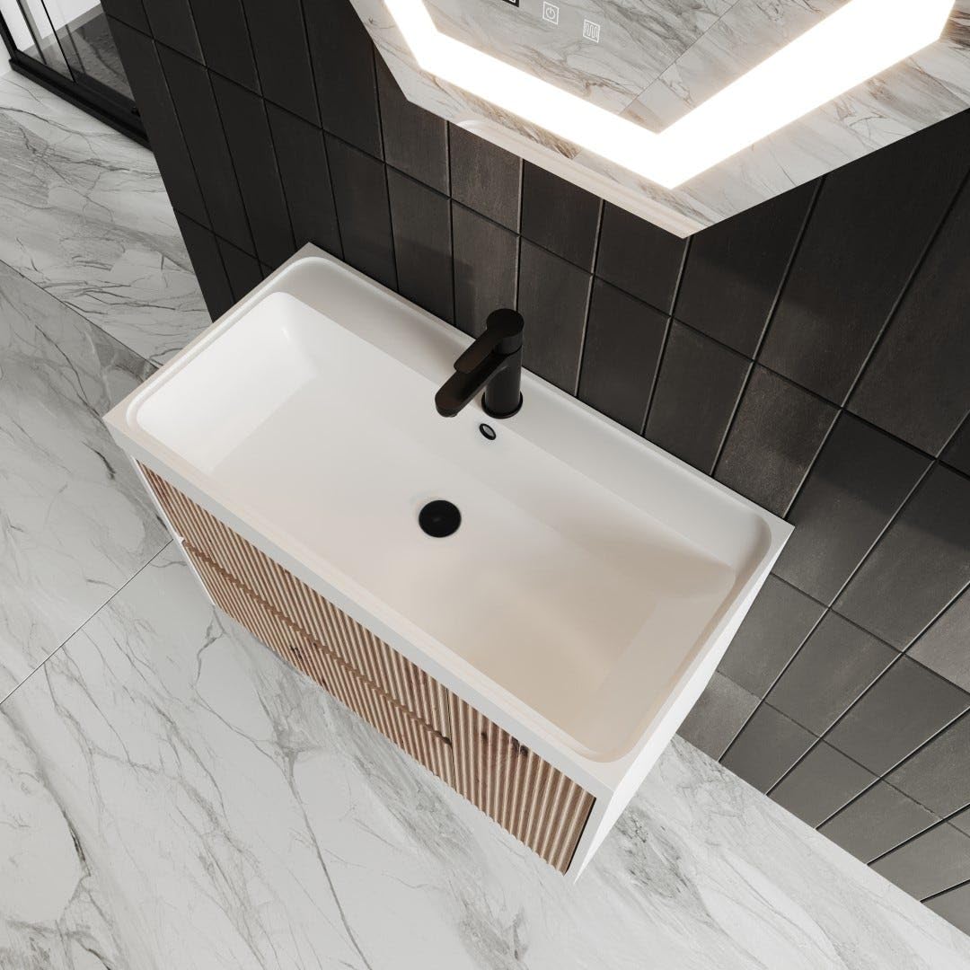 Le lavabo en cramique est rsistant et facile nettoyer, complet avec un trou pour le mlangeur et un systme de trop-plein. Meuble Lavabo 80cm Blanc Meuble Salle De Bain Kiamami Valentina - 80cm Suspendu, Blanc Et Chêne Arctique Rangement Salle Bain Moderne Finition: structure blanche, façade chêne; lavabo blanc. Meuble Salle De Eau Blanc Et Bois Meuble De Salle De Bain Suspendu De 80Cm Blanc Mat Cannelé Cortina Meuble Salle De Bain Rangement La faade en MDF moulur avec finition cannage et chne ajoute un dtail dcoratif raffin. Idal pour ceux qui souhaitent rnover leur salle de bain avec un lment pratique mais aussi dcoratif. KIAMAMI VALENTINA - MEUBLE DE SALLE DE BAIN SUSPENDU 80CM 2 TIROIRS... Lavabo en céramique avec trou pour robinet et trop-plein., INCLUT: base, lavabo. Taille de la base : largeur 80cm, hauteur 53cm, profondeur 46cm. Le meuble de salle de bains « Kiamami Valentina » se présente comme la solution idéale avec son design élégant et sa praticité. Composé d’un lavabo spacieux, d’un miroir et d’une armoire suspendue, il optimise l’espace tout en apportant une touche moderne à votre pièce L'offre ne comprend pas : siphon et robinet, vis et chevilles pour la fixation. Le meuble de 80cm apporte ordre, chaleur et modernit n'importe quel environnement. Matériau: structure en bois nobilité, façade en mdf cannelé. Conu pour allier esthtique et fonctionnalit, ce meuble prsente une base en finition bois blanc dote de deux tiroirs spacieux avec fermeture amortie et cts intrieurs en bois. Meuble de salle de bains suspendu 80cm blanc avec 2 tiroirs avec façade cannée en chêne doré.