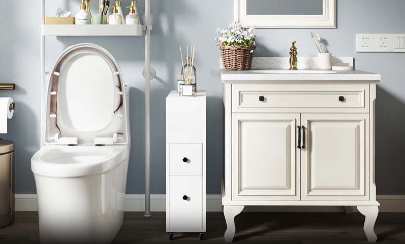 Rangement à Plusieurs Niveaux - L'étagère supérieure et le compartiment ouvert offre de la place pour les articles fréquemment utilisés tels que le papier toilette et les gels de nettoyage. Et un porte-Balayette est prévu à l'arrière. Deux d'entre eux sont équipés de freins pour garantir que l'armoire de toilette est stable et ne glisse pas lorsqu'elle est utilisée. Caractéristiques : Étagère supérieure, compartiment ouvert et 2 tiroirs pour ranger vos effets personnels Espace caché à l'arrière pour ranger discrètement la brosse de toilette Équipé de quatre roulettes pivotantes pour une mobilité facile 2 roulettes sont équipées de freins pour stabiliser l'étagère Meuble étroit d'une largeur de 16 cm, s'adapte aux espaces restreints Bord de 5 cm de haut pour éviter que les objets ne tombent Poignées raffinées, non seulement belles, mais aussi pratiques S'adapte à tous les styles de décoration de vos pièces Spécification : Couleur : Noir/Blanc Matériau : MDF, Panneaux de Particules Dimensions du produit : 50 x 16 x 69 cm (L x l x H) Poids total : 30 kg Poids net : 10,5 kg Le Colis Comprend : 1 x Meuble salle de bain 1 x Manuel d'utilisation Meuble De Salle De Bain, Armoire D‘Angle Avec Porte Et Étagères Les 2 tiroirs peuvent contenir des serviettes, des produits cosmétiques et d'autres articles. Avec son étagère supérieure, idéale pour présenter les détergents ou les épices, un compartiment ouvert pour les articles fréquemment utilisés, et des tiroirs pour serviettes et cosmétiques, tout est à portée de main. Meuble sur Pied de Salle de Bain, Meuble Étroit pour Papier Toilette... Et, la surface lisse est facile à nettoyer, il suffit de l'essuyer avec un chiffon humide. Ajoutez de la fonctionnalité et du style à votre salle de bain avec cette élégante solution de rangement. Flexible et Mobile - Équipé de 4 roulettes universelles, le meuble salle de bain vous permettent de le déplacer dans tous les coins. Meuble Salle De Bain étroit 16 Cm GIANTEX Petit Meuble Salle De Bain 16 Cm, Armoire Salle De Meuble Toilette Petit Espace Mobile Sobuy bzr119-w armoire wc toilettes compact roulante, meuble de... Détails Conviviaux - La plaque supérieure est équipée d'un bord de sécurité de 5 cm de haut pour empêcher les objets de tomber.
