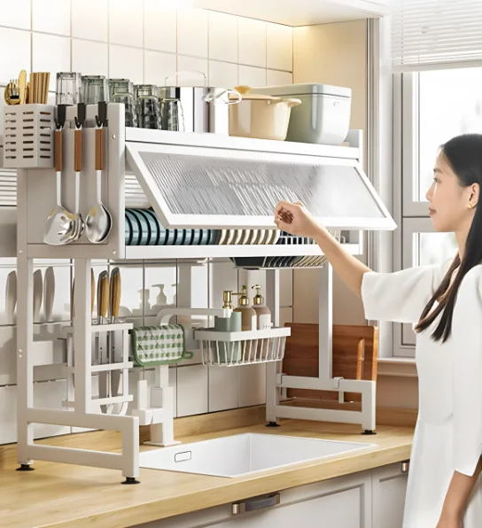 1 support pour planche à découper., 1 porte-couteaux., 6 crochets., 4 pieds antidérapants La housse protège vos plats de la poussière pendant qu'ils sèchent à l'air libre Ajustement parfait pour votre évier : conçu pour s'adapter parfaitement à la plupart des tailles de robinets et d'éviers, notre égouttoir à vaisselle au-dessus de l'évier a une longueur intérieure de 72,9 cm et une hauteur de première couche de 50 cm. Contenu de l'emballage : 1 égouttoir à vaisselle au-dessus de l'évier., 1 porte-ustensiles., 1 support pour éponge. Rainbow Home Égouttoir à vaisselle à 3 niveaux au-dessus de l'évier Dites adieu au désordre de cuisine : vous en avez assez d'une cuisine désordonnée ? L'égouttoir à vaisselle est livré avec un porte-éponge, un porte-ustensiles, un support pour planche à découper, un support à couteaux et 6 crochets, assurant que vos fournitures de cuisine sont organisées. Hauteur du premier niveau : 50 cm. Grande capacité : l'égouttoir à vaisselle Sakugi pour comptoir de cuisine dispose d'une capacité impressionnante qui peut accueillir une variété de vaisselle et de fournitures de nettoyage, y compris des bols, de la vaisselle, des couteaux, des verres à vin, des planches à découper, des éponges, des brosses, et plus encore Sa construction robuste assure la stabilité même lorsque vous soutenez des plats lourds, tandis que le revêtement résistant à la rouille assure une performance durable Longueur intérieure : 73 cm. Maximisez l'efficacité de la cuisine : notre égouttoir à vaisselle utilise l'espace au-dessus de votre évier, économisant de l'espace précieux sur le plan de travail et vous permettant de maximiser pleinement le potentiel de votre cuisine. égouttoir Métal Noir Meubles Égouttoir à Vaisselle Au-dessus De L'évier + Support Pour Planche A Decouper 4682028 égouttoir Sur évier EN STOCK : Égouttoir pour dessus évier pas cher. Grand choix, promos permanentes et livraison rapide partout en France. Paiement sécurisé Qualité supérieure et durabilité : fabriqué à partir de métal robuste, notre égouttoir à vaisselle au-dessus de l'évier est conçu pour durer.