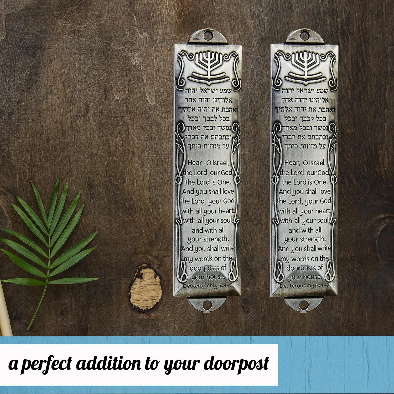 Chaque porte d'une maison juive (intérieur et extérieur, avant et côté) nécessite une mezouzah. Hanoukia en métal argenté Judaique Le métal lourd assure la durabilité et la longévité de votre plaque Mezouzah. Parchemin Mezouzah Décoration Juive Mézouza Juif Prefdo Mezouzah Avec Parchemin Pour Porte, U00e9tui De Mezouzah Pour Porte De Mitzvah Juive, Plaque Mezouzah Couronne Classique, Cadeaux Juifs, Cadre De Mezouzah Photo Boitier Juif Mezouza Selon la tradition juive, vous devez placer la mezouza à l'entrée de votre maison et à l'entrée des autres pièces intérieures de la maison. Où pendent les mezouzas ? Vous devriez accrocher une mezouza à peu près toutes les portes qui vous appartiennent. MEZOUZAH AVEC ROULEAU Pour Porte Décor Vintage Parchemin Sacré De La... Cadeau de bénédiction parfait : que ce soit pour un cadeau ou pour un usage personnel, notre plaque Mezouzah est le choix parfait pour ajouter une touche de spiritualité à votre intérieur. Cet étui Mezouzah est une œuvre d'art intemporelle qui apportera beauté, inspiration et sens de la tradition à votre intérieur., Dimensions : 13 x 3 cm. Notre ensemble de mezouzah est un cadeau juif significatif pour un garçon de bar mitzvah ou une fille Bat Mitzvah. Mieux encore, cet ensemble serait un merveilleux cadeau de pendaison de crémaillère ou pour une mariée et un marié La mezouza doit être accrochée sur le côté droit de la porte, sur le tiers supérieur de la porte. Les exceptions notables sont les portes menant aux salles de bains et aux petits placards. Lourd et bien fait : fabriqué en alliage de zinc de haute qualité, chacun comprend deux vis de montage. Présentation de la Mezouzah Mezouza est un mot hébreu qui signifie « pas de porte ». Plaque de bénédiction unique pour maison : notre mézouza Bless This House de 13 cm de hauteur est conçue pour être magnifique sur n'importe quel poteau de porte et peut servir de rappel quotidien de la protection et des bénédictions de Dieu.