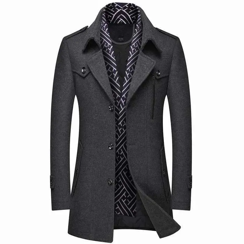 ALLTHEMEN Manteau en Laine à Revers, Pardessus Long Slim Business à Deux Boutons-Noir Noir Manteau Business Décontracté Manteau Homme En Laine,Epais Mi-long Manteau Hiver Mélangée à Chevrons,Double Boutonnage-Gris Manteau Homme Mi Long Manteau - caban,Manteau en laine coréenne pour homme,veste Trench... Veste homme uni et chaud: Ce manteau homme en couleur unie possède une doublure intérieure en molleton léger, idéal pour affronter les températures fraîches de l'automne et de l'hiver Manteau en Laine Mélangée Homme Mi-Long Chaud Hiver Epaisse Bleu anteau Hoe Laine Hiver Chaud Trench-Coat Caban élégant Blouson Parka... manteaux homme... Polyvalence d'utilisation: Idéal pour le sport, les loisirs en extérieur ou comme vêtement de détente à la maison, ce vêtement associe praticité et esthétique Design épuré et fonctionnel: Son col montant et ses manches longues garantissent une isolation contre le froid, tandis que son style sobre s'intègre facilement à toute tenue
