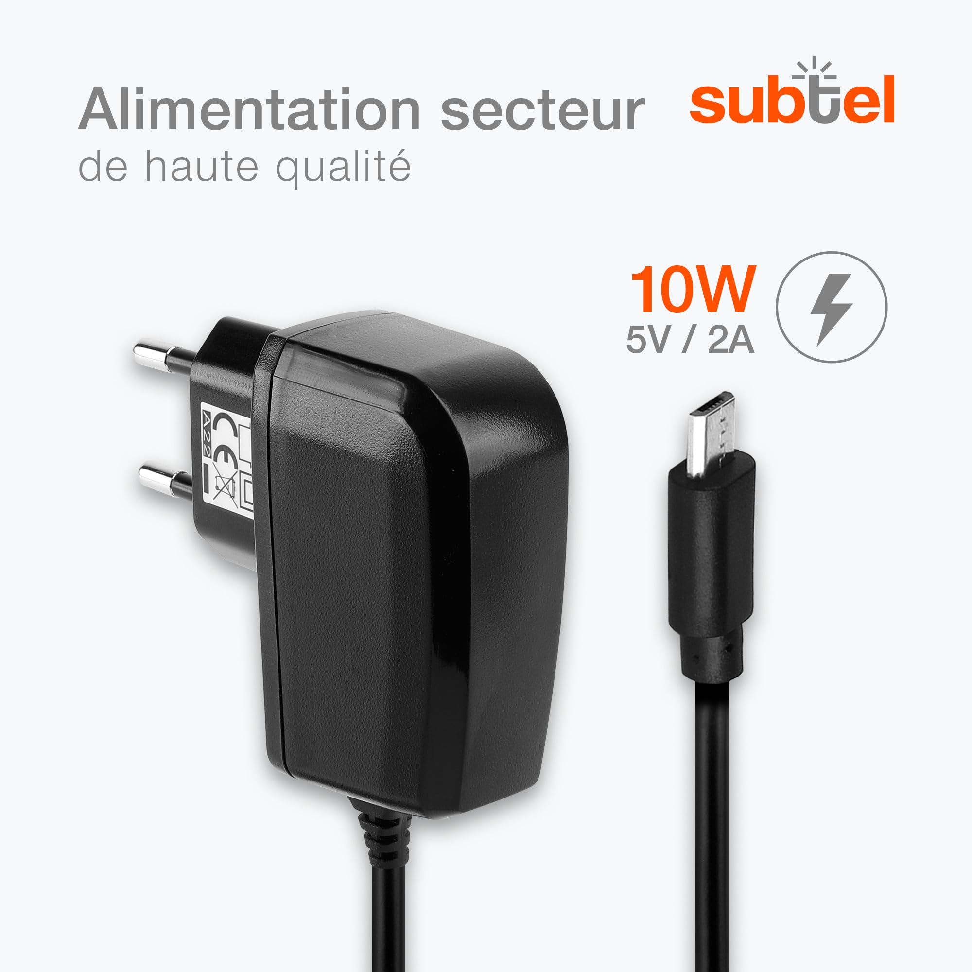 Chargeur Micro Usb 5v 2a Subtel Chargeur Tablette Micro USB 5V 2A / 2000mA 1.2m Chargeur Universel Pour Tablette Lenovo Keple Câble de Chargeur Micro USB Cordon d'alimentation de Charge de Type A USB Micro à USB Compatible avec Casque d'écoute sans Fil Bluetooth SoundSport 35 / QuietComfort 35 (1m subtel Chargeur Tablette Micro USB 5V 2A / 2000mA 1.2m Compatible... Si votre chargeur est défectueux celapeut-être du à l'étât du câble d'alimentation ou de la station de chargement et ses composants. Dans ce cas, il vaut mieux changer son chargeur afin d'éviterles risques d'abîmer vos appareils et autres accidents. ✔ Technologie moderne: chargement rapide et arrêt automatique✔ Construction Performante: Flexible, Câble de Chargeur très résistant✔ Sécurité garantie: protection contre les surchauffes, les surchauffes et les surtensions✔ Adaptable et Pratique: optimal pour enmener vos appareils en voyage. Chargeur rapide et intelligent pour votre tablette! CHARGEUR UNIVERSEL - 5V 2A / 2000mA 10W bloc d'alimentation avec connecteur et cordon d'alimentation 1., 2m - chargeur secteur de remplacement. QUALITÉ CERTIFIÉE - La prise d'alimentation CA avec cordon de 1., 2m est flexible et incassable et est conforme à toutes les normes de sécurité modernes pour une longue durée de vie Lenovo A10-30 A10-70 A7600-H A10-70 WiFi A7600-F A3500 A3500-FL A3500-HV A5500 A5500-HV A7-10 A7-30 A3300-GV A7-30 WiFi A3300 A7-40 Tablet A7-50 A3500-H A7-50 WiFi A3500-F A7600 A8-50 A5500-H A8-50 WiFi A5500-F IdeaPad Miix 2-10 (20359) IdeaPad Miix 2-11 IdeaPad Miix 2-8 (20326) IdeaPad Miix 3-10 IdeaPad Miix 3-8 IdeaPad Tablet A1 IdeaPad Tablet A1-07 IdeaTab A1000 IdeaTab A1000-F (60027) IdeaTab A1000-T (60028) IdeaTab A1000L IdeaTab A1000L-F (60041) IdeaTab A2107 IdeaTab A2107A IdeaTab A2107A- Spécifications techniques: Entrée / Input: 100V - 250V Connecteur 1: USB C Type C Tension de sortie / Output Volt: 5V Ampérage de Sortie / Output ampère: 2A / 2000mA Puissance / Power Watt: 10W Longueur de câble: 1,2m Comment savoir si un chargeur est adapté ? Pour chaque modèle, nous proposons une liste des appareils adaptés