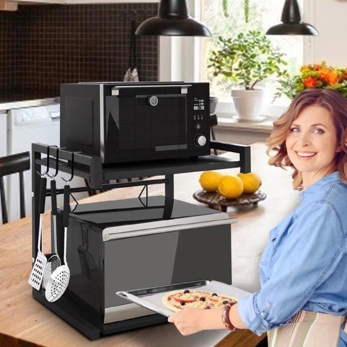La hauteur de la couche est réglable de 10 cm. Support de Four à Micro-Ondes, Extensible Etagere Rangement Cuisine... Équilibré sur une surface plane pour offrir beaucoup d'espace et de flexibilité pour vos besoins de cuisine. 🐼 [Etagere Micro Ondes Cuisine Rangement] - Nos étagères pour micro-ondes XUANYU sont réglables de 40 à 64 cm de longueur et réglables en hauteur de 30 cm/ 40 cm. Organisateur Cuisine Blanc Métal Support De Four à Micro-ondes Extensible, Etagere Rangement Cuisine Four A Micro Ondes 6 Crochets Charge 25 Kg 36 60 X36 X 35 44cm Noir Noir 44256303 étagère Cuisine Extensible 40-64 Cm Le Support de Four à Micro-Ondes Extensible équipée de quatre pieds réglables pour une utilisation dans différentes situations. 🐼 🐼 🐼 🐼 Étagère de cuisine télescopique multifonctionnelle. Les étagères vous permettent de ranger facilement votre micro-ondes ou d'autres ustensiles de cuisine, gardant votre cuisine propre et bien rangée. La surface a un revêtement noir non toxique pour éviter les températures élevées et la rouille, chaque couche peut supporter 25 kg et des rondelles antidérapantes empêchent la table de glisser et de se rayer. Qu'il s'agisse d'un micro-ondes, d'ustensiles de cuisine ou de vaisselle, ce support maintient tout en sécurité et stable. Le support d'extension convient à une utilisation dans les cuisines, les placards, les salles de douche et autres espaces de stockage pour augmenter l'espace de stockage et économiser de l'espace. La conception à Organisateur de Rangement avec 6 crochets supplémentaires offre beaucoup d'espace et de flexibilité pour vos besoins de cuisine. JAATA Support de four à icro-ondes,2 Niveaux Support de Four à icro... La longueur réglable de l'étagère télescopique convient aux éviers et table de nombreuses spécifications. Peut stocker un micro-ondes et d'autres ustensiles de cuisine tels que des bouteilles, des verres, des assiettes, des poêles, des casseroles, etc. four à micro ondes étagère extensible comptoir organisateur