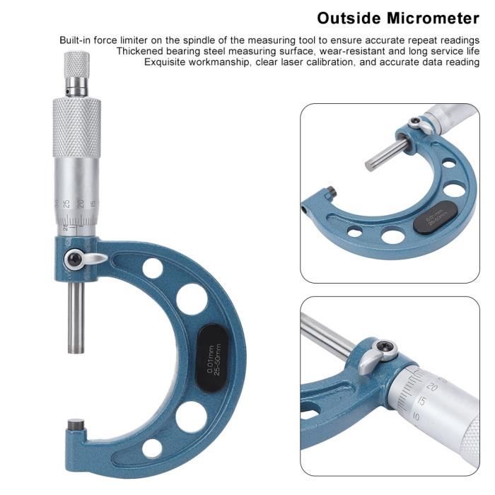 Micromètre Extérieur - GAROSA - 50-75mm - Acier Inoxydable - Haute Micromètre 25 50 Mm Précision 0.01mm JUZ règle de jauge de guitare Règle de jauge d'action de corde jauges... Micromètre en spirale Micromètre, Micromètre Extérieur, Outil de VALICLUD Micromètre Extérieur Acier Inoxydable Précision Large Plage Outil de Mesure de Jauge Épaisseur pour Instruments de Mesure KIMISS micromètre extérieur avec clé Outil de mesure d'épaisseur de... Précision exceptionnelle : fournit des mesures avec une précision de 0,01 mm, fournissant des lectures précises du diamètre extérieur pour les applications critiques, micromètre à pied à coulisse, micromètre large en acier inoxydable de haute précision Matériau : fabriqué avec des matériaux et des processus d'usinage de précision pour la qualité et la fiabilité du produit, micromètre de haute précision, outils de mesure pour machinistes Utilisation polyvalente : avec une plage de mesure de 25 à 50 mm, ce micromètre est suffisamment polyvalent pour gérer diverses tâches de mesure dans différents contextes, outil de jauge métrique, micromètre mécanique Description du produit Large capacité de mesure : convient pour mesurer des diamètres extérieurs allant de 25 à 50 mm, répondant à une variété de besoins de mesure, mesure de précision micrométrique également, micromètre de haute précision