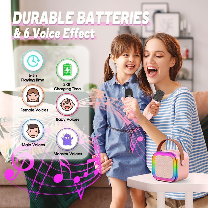 15 idées de chansons karaoké pour les enfants en 2024 Ce machine de karaoké avec effet d'éclairage LED rendra toute fête ou réunion plus excitante et vivante, apportant de la joie à vos invités toute la nuit. Micro Karaoke Adulte PQETBV Karaoké Avec Microphone Bluetooth Pour Enfants, Avec 2 Effets Voix Lumière Led Dans le même temps, la batterie intégrée garantit 5 à 10 heures de divertissement. Description de Mini machine de karaoké pour enfants, 2 microphones sans fil, lumières, Bluetooth, téléphone [2 micros sans fil]Mini karaoké pour enfants : son clair et sans latence. Chantez en parfaite synchronisation grâce aux 2 micros sans fil. Connectez-vous à votre téléphone/tablette via Bluetooth pour une transmission audio stable et de haute qualité, idéal pour les duos et... Shipenophy machine de karaoké pour enfants avec 2 microphones Machine... 【Meilleur Cadeau】: Cette microphone karaoke n'est pas seulement un jouet, c'est aussi un excellent outil pour promouvoir l'amour des enfants pour la musique et le chant. 【Fonction de Changement de Son】: Ce karaoké sans fil bluetooth dispose également d'une fonction de changement de voix qui peut convertir votre voix en voix masculine, féminine, infantile et monstrueuse, etc. Cadeau de Noël meilleur pour les filles de 3, 4, 5, 6, 7, 8, 9, 10, 11, 12 ans et plus, les tout-petits, les adolescents et les adultes. 【Taille et Poids】: La taille du karaoké enfant est petite, seulement 14 * 10 cm, le diamètre de la poignée du microphone est seulement 13,5 cm, il est donc idéal pour les adultes et les enfants, même les filles de 3 ans peuvent facilement tenir. Il peut transformer n'importe quelle pièce en salle de concert, ce qui la rend adaptée à toute la famille pour jouer ensemble, améliorer les compétences de chant de l'enfant et favoriser l'interaction parent - enfant. Grâce à la dernière technologie Bluetooth 5., 2, profitez d'une diffusion fluide et d'une connexion ultra-stable jusqu'à 10 mètres de distance.