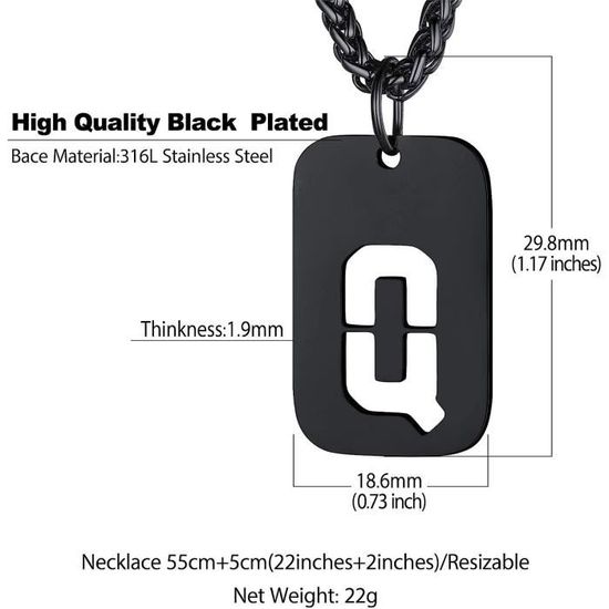 Collier acier initiale O avec un strass Design de pendentif creux: la conception présent un effet tridimentionnel, qui vous rendra plus remarquable dans la foule. Chaîne Plaque Initiale Collier Plaque Militaire Texte Photo Collier Dog Tag Militaire Personnalisable Bandmax - Acier Inoxydable Avec Texte/Photo Bijou Acier Inox Chaine Homme Acier Inoxydable Dimensions: la plaque (à l'inclusion de la bélière) - 30 mm * 18,6 mm * 1,9 mm; longueur de la chaîne - 22 pouces ≈ 55 cm, avec 5 cm d'extension, largeur - 3mm. Type de métal: acier inoxydable 316l en plaqué or 18 carats - le premier est une matière robuste et inaltérable, l'un des métaux les plus utilisés en bijouterie, présent en outre la aprticularité d'être hypoallergique Présentation du produit Bandmax Collier Plaque Initiale En Acier Inoxydable-Plaqué Or Pour Homme Femme Chaîne Pendentif Dog Tag Avec L'Alphabet Creu [n3398] Collier initiale personnalisable: vous pouvez personnal r le pendentif avec le prénom, le prénom de votre amoureux, le numéro, la date d'anniversaire, le mémo, le rêve ou tout mot pour vous. Veuillez cliquer sur « Personnal r... Si vous rencontrez des problèmes, n'hésitez pas à nous contacter par e-mail. Vous pouvez simplement choisir votre propre lettre pour montrer votre prénom unique, votre histoire ou tout autre message significatif. Veuillez comprendre que nous ne pourrons peut-être pas vous répondre immédiatement en raison du décalage horaire entre les deux pays. Collier plaque initiale: pendentif dog tag avec une lettre initiale creuse au dessous, accroché à une chaîne ajustable. Ce collier sera un cadeau optimal pour vos proches et amis en toute occasion, et également un présent parfait à s'offrir pour se faire plaisir. Description du produit Chaîne Pendentif Plaque Militaire avec Lettre Ciselée, Collier Homme Initiale