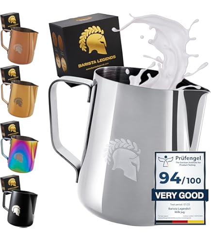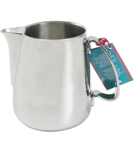 Pot à Lait ILSA Evolution Bec Verseur Rainure Pour Latte Art 600mL // Milk Pitcher For Latte Art 600mL - TORPEDO L'Art Du Café Pichet à Lait Pichet Inox 350ml – Pichet à Lait 12oz en Acier Inoxydable 304 avec Cafetière,pichet à lait avec échelle en acier inoxydable, pichet à lait, Barista Craft, tasse à... favorisant l'incorporation d'air et l'élimination des bulles d'air plus grosses, la formation d'une crème homogène de densité optimale, la réduction des temps de production. La grande surface d'appui de la base facilite le refroidissement du lait non utilisé et la poignée ergonomique garantit une parfaite prise en main. Pot à lait en acier inoxydable 18/10 La rainure innovante sur le corps du pot à lait accélère le flux tourbillonnant du lait. Poignée ergonomique pour une prise en main parfaite Pot à lait 6 tasses pour décorer le cappuccino La rainure accélère le flux de lait tourbillonnant La surface du fond arrondi et large facilite le refroidissement du lait non utilisé. Sa capacité de 50cl permet de réaliser 2 à 3 cappuccini. Ergonomie. Sa...