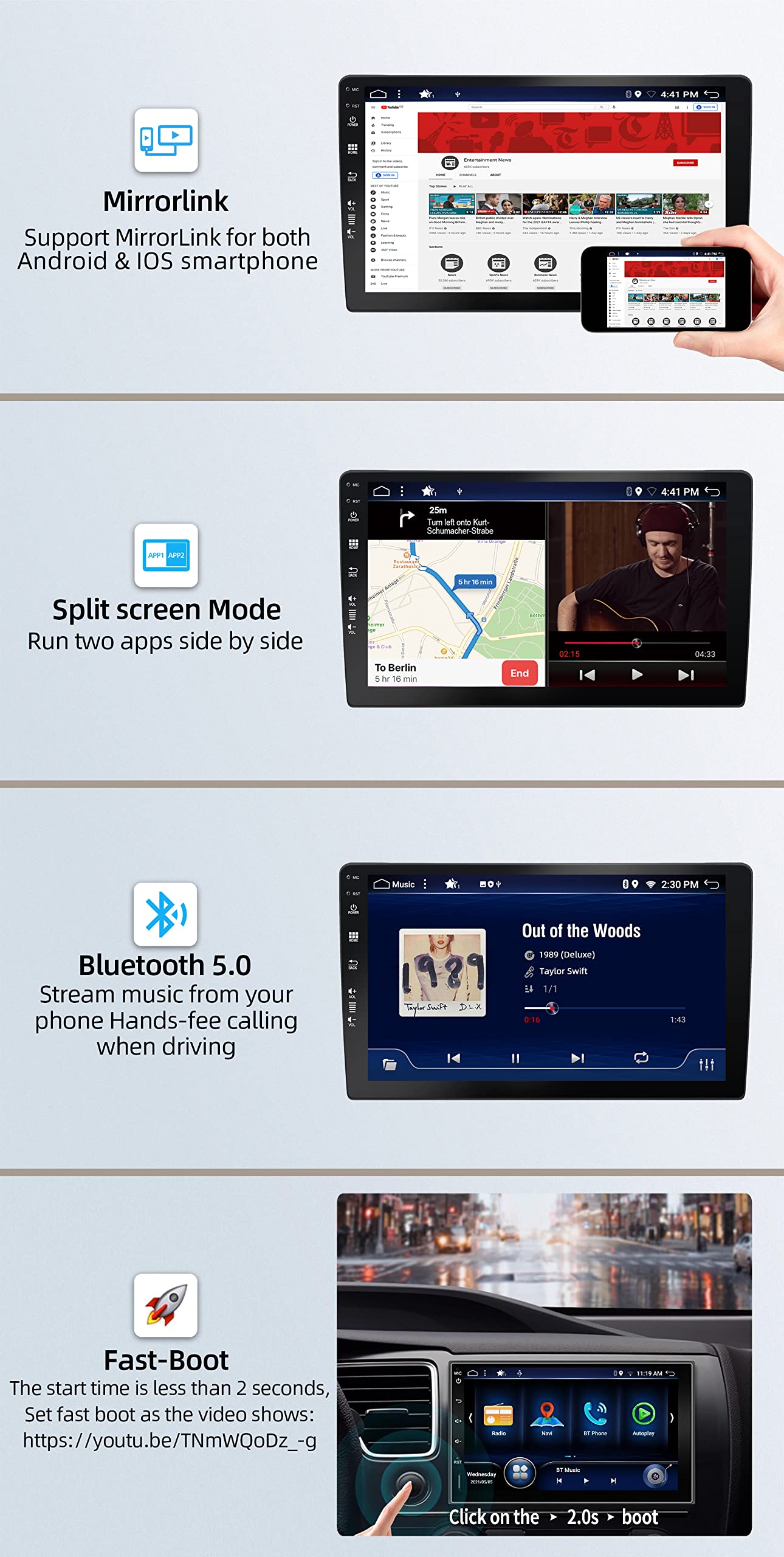 【INTÉGRÉ CARPLAY - ANDROID AUTO】 Apple CarPlay et Android Auto intégrés. BXLIYER Android 12 IPS Autoradio Pour BW X1 E84 (2009-2015) - 2G 32G... 【SPÉCIALITÉ】 Prend en charge DAB + (adaptateur DAB: B083Q7YG4F) / vidéo 4K (3840 × 2160 pixels) / vidéo HD 1080P / MirrorLink avec téléphone iOS ou Android / modem WiFi intégré / applications de navigation GPS en ligne et hors ligne, prise en charge des cartes 3D et du guidage vocal / Réception radio AM FM Carte mémoire RDS / USB et MicroSD (jusqu'à 500 Go) / Commande au volant. ▲ Erbij betrekken: Caméra arrière. Android 14 Android Auto Autoradio Für BMW Mini Cooper R56 R60 2007-2014 Carplay Radio Android Auto Bmw Assistance pour utiliser les fonctions de votre smartphone dans la voiture, par ex. Informations système Système d'exploitation Android 14 TOP-CPU : processeur T3 Quad Core Cortex-A7 RAM : DDR3 2 Go ROM : 32 Go Variateur intégré Sortie audio : 4*50 W max. Permet aux utilisateurs de passer des appels avec Siri et d'écouter de la musique. 【DÉMARRAGE RAPIDE - ÉCRAN PARTAGÉ - DOUBLE BANDE WIFI】Accéder au système en moins de 2 secondes pour accélérer le temps de démarrage du système Android de 25 à seulement 2 secondes n'est jamais facile. Vous pouvez utiliser Spotify/d'autres applications pendant la navigation. Entrée de caméra (caméra de recul GRATUITE): Prend en charge la caméra de recul Il passera automatiquement à la caméra de recul lorsque la marche arrière est activée. Si vous n'êtes pas sûr que votre voiture soit adaptée ou non, veuillez nous fournir de l'aide avec des images du tableau de bord. CarPlay & Android Auto a azda 2 nachrüsten | Typ DY, DE, DJ1, Hybrid Lien miroir et téléphone intelligent Mise en miroir d'écran: Mettez votre smartphone en miroir via un câble USB ou une connexion wifi Afficher et contrôler votre téléphone sur l'écran stéréo de la voiture. ▲Signal plus fort, vitesse du réseau plus rapide. CarPlay & Android Auto am Hyundai ix35 nachrüsten | alle Baureihen