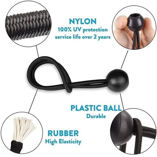 Sandow élastique caoutchouc à crochets | Achat à prix pas cher Ils sont également adaptés à des usages commerciaux nécessitant des fixations robustes. Tendeurs élastiques 10 Pièces Tendeurs Avec Crochets Mini Elastiques Tendeurs Universels Robustes Tendeurs Sandow Avec 2 Crochet Resistants Sangle Pour Tente Camping Moto Remorque Bagage Voiture Et Velofontainebleau Noi 84600831 Sandow Elastique Objectif : Idéal pour une utilisation en extérieur, ces tendeurs sont parfaits pour le camping, les jardins, les abris de bateau, le vélo, la randonnée et bien d’autres activités de plein air. 2 pcs Sangles Tension, pour la Fixation avec des Sangles Tension Pendant Le Transport, (Longueur 2m, élastique) avec Doubles Crochets aux Deux extrémi JEXNOVASHOP-8 pièces Tendeurs Elastique avec Crochets, 40 cm/60 cm/80 cm/100 cm Corde Elastique, Cordon Elastique, Sandow Élastiques Caoutchouc, Sangles de... Pack économique : Ce pack comprend 20 tendeurs élastiques avec crochets, chacun mesurant 10 cm. Le crochet en plastique haute résistance est conçu pour résister aux intempéries, à l’usure et reste stable, même dans des conditions extérieures difficiles. Grâce à leur excellente élasticité, ces tendeurs offrent une stabilité accrue, une résistance à la rupture et une longue durée de vie, en faisant un ajout pratique à vos équipements de plein air Ils sont conçus pour une utilisation rapide et facile grâce à des crochets robustes et une capacité télescopique qui permet d’ajuster la longueur pour différentes applications. Bonne capacité télescopique : Ce tendeur avec crochet peut être étendu facilement pour s'adapter à différents besoins de fixation. Fonction : Ces tendeurs sont utilisés pour fixer des objets tels que des bâches, tentes, et équipements extérieurs.