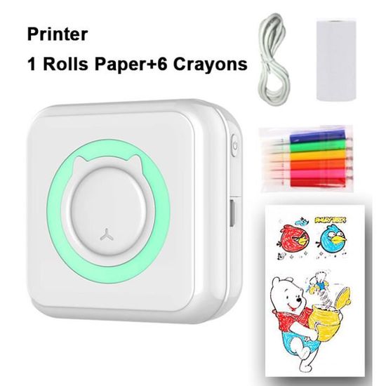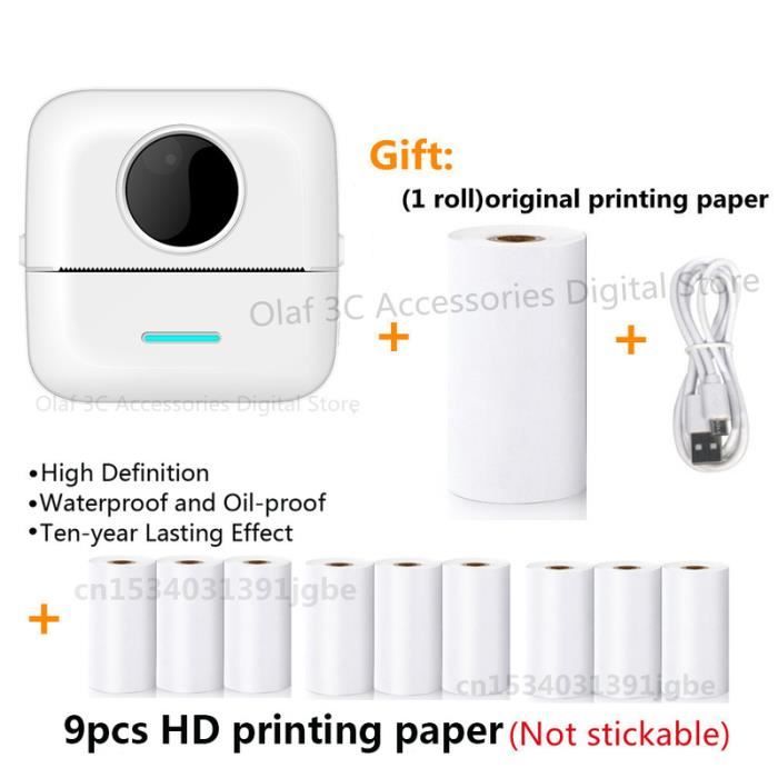 Mini Imprimante Photo, Imprimante D'étiquettes Thermiques Connexion SCÉNARIO APPLICABLE: la mini-imprimante d'autocollants convient au bureau, à la famille, aux étudiants, aux enfants, aux archivistes amateurs, à la mère et à d'autres sujets d'application, également le meilleur aux enfants pendant les vacances, Noël, le Nouvel An et les anniversaires Imprimante Portable Mini Sans Encre Mini Imprimante Portable Avec Batterie Rechargeable, Résolution 200 Dpi Imprimante Pour étudiants Bureau Voyage Équipée d'une excellente tête d' capable d'imprimer du papier thermique de 57 mm (largeur) x 30 mm (diamètre du rouleau) avec une résolution de 200 DPI, il s'agit d'une imprimante thermique de poche à faible consommation d'énergie avec une batterie au lithium intégrée de 1 000 mAh qui dure 15 heures avec une CONCEPTION PORTABLE ET COMPACTE] - Mini imprimante thermique sans encre BT de la taille d'une paume, facile à transporter avec une résolution de 200 DPI... Portabilité et fiabilité] Notre imprimante de poche sans encre présente une taille compacte de 4,3 L x 3,14 L x 1,4 H pouces (11 x 8 x 3,5 cm) et ne pèse que... Connectez tout pour les smartphones iOS et Andirod à l'imprimante de poche rapidement et facilement en quelques secondes via IMPRIMANTE DE POCHE MULTIFONCTIONNELLE : Imprimante de poche sans encre pour imprimer des images ou des photos en noir et blanc, des mémos, des listes de courses, des notes d'étude ou de réunion, des affaires, des plans de travail, des assistants de bureau, des étiquettes, des messages, des listes, des pages Web, des codes QR, des enregistrements, etc., . des thèmes tels que le matériel de Noël, de Pâques et de Thanksgiving, ainsi que de nombreux matériels de dessin au trait de les des thèmes tels que le matériel de Noël, de Pâques et de Thanksgiving, ainsi que de nombreux matériels de dessin au trait de les jours. PORTABLE ET ÉLÉGANTE : Cette imprimante compacte est petite et légère, élégante et de la taille d'une paume afin que vous puissiez la mettre dans votre poche ou votre sac et l'emporter partout. 1., PORTABLE ET ÉLÉGANTE : Cette imprimante compacte est petite et légère, élégante et de la taille d'une paume afin que vous puissiez la mettre dans votre poche ou votre sac et l'emporter partout.