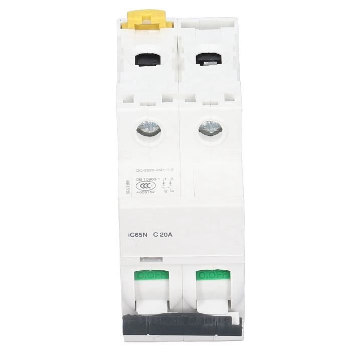 Disjoncteur - DIOCHE - DZ47-125 - AC400V - 10 kA - Ignifuge sur rail... Paramètres de base : avec une capacité de coupure de court circuit ultime nominale de 6 000 A, la tension et le courant nominaux sont de 230 V AC 400 V 20 A. Utilisation pratique : le mini disjoncteur est principalement utilisé pour l'éclairage des immeubles de bureaux, des immeubles résidentiels, etc. Disjoncteur Rail DIN Notre Top 10 Des Mini Interrupteur 230v 400v Au France Disjoncteur Court-circuit 6000A Matériau sécurisé : fabriquée en nylon PA66, la coque ignifuge garantit un travail plus sûr tout en minimisant les accidents. Easy to install: the modular structure and the bistable locking clip greatly simplify the installation of the DIN rail on the distribution box Spécifications:Type d'article : disjoncteurModèle : DZ47-63 C20Matériau : Pa66Courant nominal : 20 ATension nominale (Ue) : AC 230 V 400 V 50 HzCapacité nominale ultime de coupure de court circuit (ICN domestique) : 6 000 AListe de colis:1 x disjoncteur Fusible 20a - Interrupteurs de voiture électrique pour enfants, poignée d'engrenage, pédale
