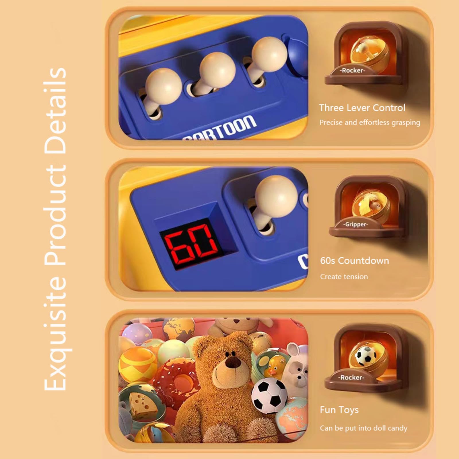 CADEAU PARFAIT:Que Vous Fassiez Une Fête Ou Que Vous Passiez Simplement Du Temps Avec Votre Famille, Notre Mini Machine à Griffes Pour Enfants Vous Permettra De Profiter D'un Plaisir Illimité Avec Vos Amis Et Vos Enfants. Jeu Arcade Maison Mini Machine à Pinces Pour Enfants,Machine Attrape Bonbon Pour Fêtes Mini Machine Attrape Bonbon Comme Des Bonbons/Mini Jouets En Peluche/Jouets Spongieux/Gum/Snacks/Mini œufs De Pâques Remplis. HAZARA Machine Pince Bonbon , Sweets Machine for Home avec Musique... Cette Machine à Griffes Pour Enfants Est Facile à Ouvrir Pour Que Vous Puissiez également En Ajouter. Les Jouets Préférés Des Autres Enfants, Des Bonbons Pour Ajouter Du Plaisir. HAZARA Machine Attrape Bonbon Machine à Sucreries avec 25 Peluches... Créer Une Expérience Plus Réaliste Pour Votre Enfant Comme S'il Y Avait Dans Une Véritable Arcade. Nom : Machine à Griffes Pour Enfants/Mini Machine a PinceDimensions:7., 68*7., 68*12., 6in/19., 5*19., 5*32cmLe Forfait Comprend :Machine à Griffes Pour Enfants * 1Câble USB * 1Gashapons*10Poupées Aléatoires * 30Manuel De L'utilisateur*1 MODE DOUBLE ALIMENTATION:La Machine a Pince Nécessite 4 Piles AA (Non Incluses Mais Faciles à Acheter) Ou Un Câble USB Se Connectant à Un Ordinateur Ou à Un Chargeur. Machine à griffes VVIKIZY - Enfants Mini pince à griffes - Jouet attrape télécommande - Blanc MUSIQUE ET LUMIÈRE:Les Jouets Machine à Pince Sont Dotés D'une Musique Dynamique, De Lumières Colorées Et D'une Limite De Temps De 60 Secondes Rendant Le Jeu Plus Difficile. Jeu Idéal Pour Les Garçons, Les Filles Et Les Enfants De Tous âges.