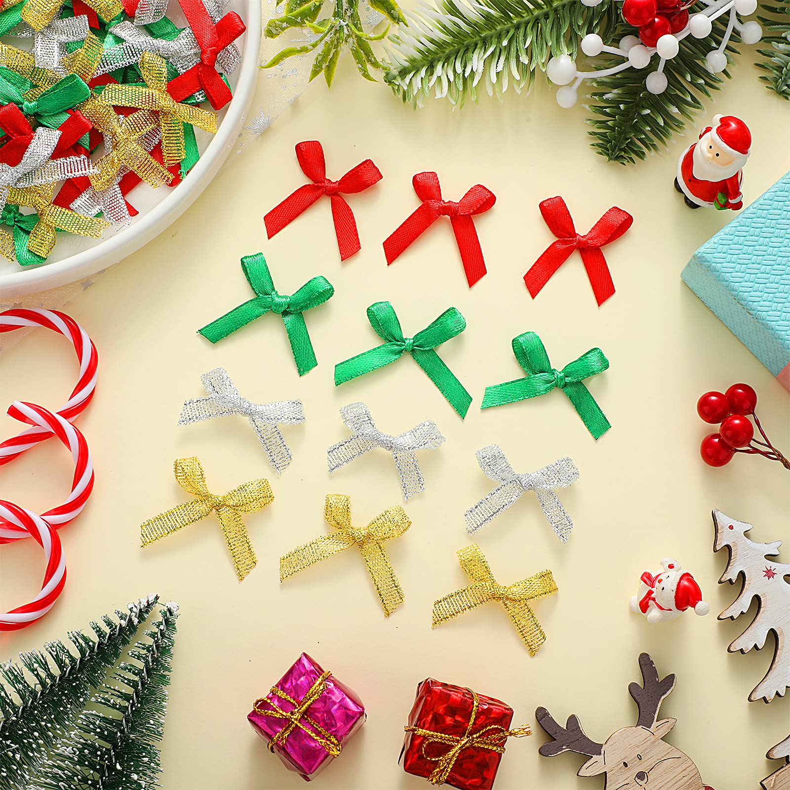 Thème de Noël : Les mini nœuds sont conçus dans des couleurs de Noël et créent une atmosphère festive. Six beaux nœuds et rubans dorés élégants parfaits pour l'emballage de... Design : ces mini nœuds sont conçus en rouge vert classique, simples et élégants. Les bords découpés au laser empêchent l'effilochage et garantissent que les nœuds conservent leur forme pendant longtemps. Ruban Satin Rouge Lot De 200 Mini Nœuds En Satin De 2 Cm - Pour Couture Noeud Rouge Utilisation polyvalente : Nos mini nœuds sont jolis et sont parfaits pour décorer des cadeaux, des décorations de mariage, des arbres de Noël, des couronnes de Noël, des couronnes de Noël, des nœuds de Noël, des décorations de table, des chaises, des portes, des porches, des décorations de fenêtre et bien plus encore. La quantité est suffisante pour vos différents projets de décoration et d'artisanat et peut également être partagée avec vos amis et votre famille. Vous pouvez également porter les mini nœuds cadeaux pour attirer votre attention. Combinez-les avec d'autres décorations et obtenez un bel effet. Multifonction : les petits nœuds de Noël sont la décoration idéale pour Noël. Robuste et durable : Fabriqué en satin de haute qualité pour une finition luxueuse et incassable. Idéal pour les cadeaux de mariage, les accessoires pour cheveux, le scrapbooking, les étiquettes de cadeau, les fêtes prénatales ou la décoration de la maison. Lot de 200 ini nœuds de Noël en ruban satiné pour couture, loisirs... Tenir hors de portée des enfants pour éviter toute ingestion accidentelle. Ils sont très bien adaptés pour vos projets faits à la main tels que des accessoires pour cheveux, des épingles à cheveux, des chapeaux, des sacs, des décorations de poupée, etc. Cinq coneil pour emballer vo cadeaux de Noël