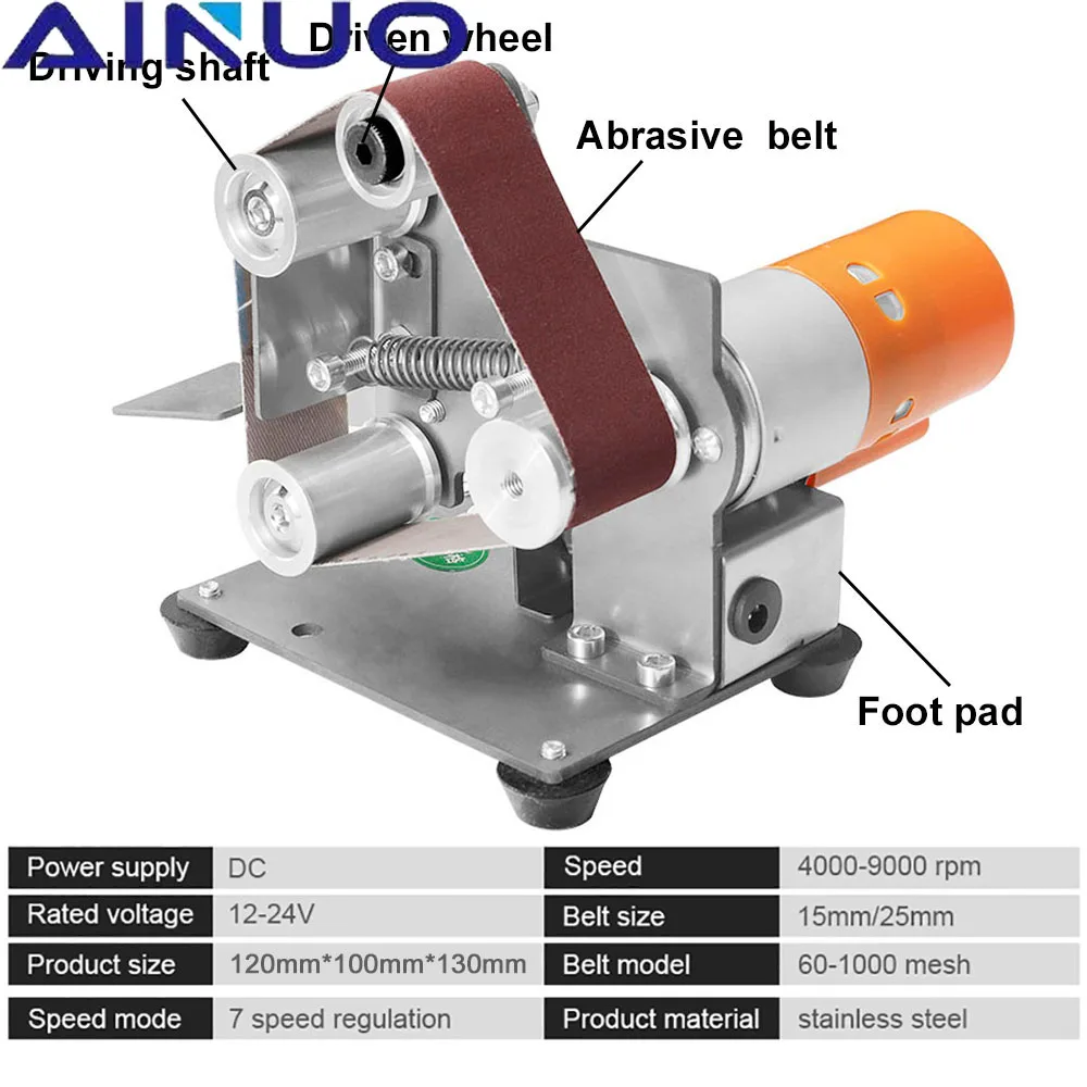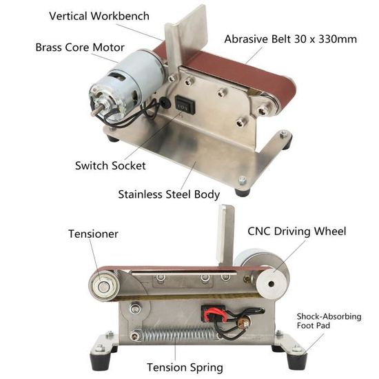 Autres accessoires pour le montage. Vitesse de rotation : 4000-9000/min. Ponceuse Réglable Angle Mini Ponceuse à Bande, Ponceuse électrique De Table, 7 Ponceuse Compacte Moteur Cuivre Haute Performance Ponceuse à bande électrique, petite ponceuse à bande avec 20 bandes de... Réglage de la vitesse : 7 vitesses de rotation Dimensions du produit : 15 x 12 x 18 cm. Vous pouvez également la retirer et visser la machine sur une table ou une planche pour la rendre plus facile à utiliser. Tension d'entrée : 110-240 V, 50/60 Hz, 1,3 A max. Excellente performance : ce produit dispose d'un moteur en cuivre à double roulement à haute vitesse (4000-9000 tr/min), d'un couple élevé, d'une puissance élevée et d'un faible niveau sonore pour assurer la sécurité et un fort effet lors de l'utilisation. Dimensions de l'emballage : 26 x 15 x 18 cm., Poids brut : 1,8 kg. Plateforme réglable : l'angle de la table de travail peut être ajusté, ce qui facilite le travail. Vitesse réglable : le curseur sur l'adaptateur secteur de ce produit permet de basculer à 7 vitesses, et le bouton à côté de l'alimentation peut également faire passer la bande de sable vers l'avant et vers l'arrière pour répondre à vos différents besoins. Type de prise : norme européenne Mode de commutation : interrupteur à trois niveaux Type de moteur : moteur entièrement en cuivre. Excellente performance]Ce produit est doté d’un moteur en cuivre à double palier à haute vitesse (4000-9000 tr/min), à couple élevé, à forte puissance et à faible niveau sonore, pour garantir la sécurité et une forte efficacité lors de l’utilisation. Ponceuse à bande, petite ponceuse électrique de table... 1 disque abrasif en aluminium. Design bien pensé : la partie de la bande abrasive est conçue comme un bateau vertical pour une surface plus longue avec un bon amortissement et offre un confort pour les travaux manuels qui ne nécessitent pas de vitesse excessive, comme par exemple B., Bijoux. Utilisation : Ce produit est adapté pour le travail du bois, le ponçage du métal, la fabrication de couteaux, la fabrication de bijoux, etc., Comment l'installer : 1., Retirez la coque de protection., 2., Desserrez la vis sur le disque abrasif et fixez-la dans le moteur., 3., Après avoir serré la tige de connexion, serrez les vis aux deux extrémités avec la clé de machine., 4., Une fois l'installation terminée, branchez l'alimentation et allumez-la. Mini Scie Sur Table INTCHE Prise UE, Ponceuse à Bande, Affûteur De Couteaux Électrique à Vitesse Réglable, Meuleuse à Bande à 15 Degrés, Ponceuse à Bande Électrique Pour Mini Scie Circulaire De