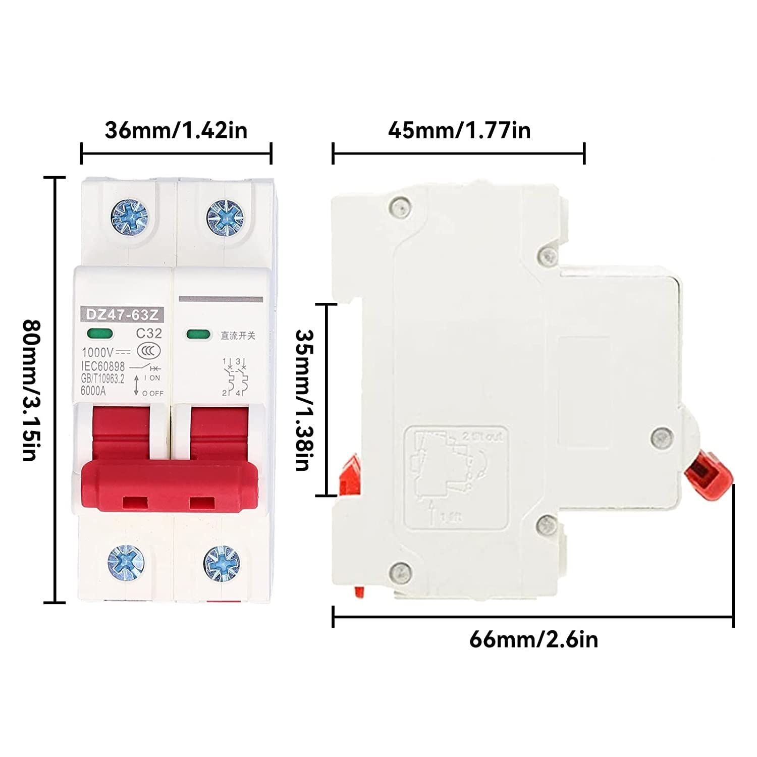 Le disjoncteur doit être adapté au câblage et à la puissance de l'appareil, sinon il peut facilement entraîner un fonctionnement anormal et provoquer un incident de sécurité. Sonew Disjoncteur 2P 2P DC Disjoncteur Miniature, 1000V 32A Disjoncteur PV à Couvercle... Durable : le boîtier du disjoncteur est fabriqué en matériau ignifuge PA66, résistant aux hautes températures, pas facile à transporter et pas facile à déformer. Ce disjoncteur, de type C, peut être installé dans les boîtes de distribution et est principalement utilisé pour la commande des distributeurs et la protection de l'éclairage. Disjoncteur 16a 4 Pièces Disjoncteur Miniature 1000V DC 2P 10A Din Rail Mount Protection Circuit 16A 2P Le système de déclenchement électromagnétique est employé, qui peut déclencher immédiatement lorsque le circuit est court-circuité pour protéger la sécurité du circuit. Fenêtre de visualisation, le témoin lumineux s'allume en rouge lorsque la poignée est poussée vers le haut, ce qui indique que le courant est allumé et que le travail commence ; le témoin lumineux s'allume en vert lorsque la poignée est poussée vers le bas, ce qui indique que le courant est coupé et que le travail est terminé. FONCTION PRINCIPALE: Les disjoncteurs peuvent protéger les systèmes de distribution de courant contre les surcharges et les courts-circuits, et peuvent également être utilisés pour le contrôle et l'isolation. L'intérieur est en cuivre, les contacts sont argentés, la réaction de déclenchement est rapide, l'action est sensible, la performance est stable et l'utilisation est pratique. APPLICATION: Le disjoncteur CC avec d'excellentes performances est utilisé dans les systèmes d'alimentation en courant continu, les systèmes d'alimentation maritime, les systèmes solaires photovoltaïques ou d'autres systèmes CC. Montage Sur Rail de 35mm Fixation du rail de guidage avec des clips de fixation solides pour une installation sûre qui ne se défait pas facilement. 2250W*3/220V=30,6A, il faut choisir un modèle de disjoncteur avec plus de 30,6A. DISJONCTEUR MINIATURE DC Disjoncteur PV 2P 1000V Pour Camping-car EUR 34,22 - PicClick IT Grande Capacité D'adaptation à L'environnement Fabriqué en matériau solide et difficilement inflammable, bonne isolation, ne se déforme pas facilement et ne fond pas à haute température. L'effacement des arcs CC est plus difficile que le courant alternatif. Disjoncteur Dc Disjoncteur 2P Dc 1000V, Protection Contre Les Courts