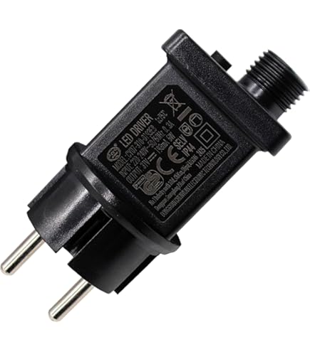 ZRZTM Lot de 4 Alimentation LED 6W 31V: Adaptateur 8 Modes Prise avec Minuterie, Fonction Mémoire, Étanche IP44 Adaptateur, Alimentation de Remplacement pour Lumières de Noël, Glaçons, Rideau Lumineux Avantages du produit 【Durabilité Améliorée】Cette Alimentation LED 6W 31V bénéficie d'une construction renforcée avec des composants électroniques de qualité supérieure. La fonction mémoire conserve les paramètres après extinction. 【Entretien Optimal】Nettoyer uniquement avec un chiffon sec et non abrasif. 【Gestion de Charge】Ne pas dépasser 6W de puissance totale connectée. 【Économie d'énergie】Cette Alimentation LED 6W 31V convertit efficacement l'énergie avec un rendement supérieur à 85%. Cette Alimentation LED 6W 31V s'adapte à toutes les ambiances festives. Star Shower Motion Alimentation LED Avec Minuterie Et Fonction Mémoire Pour Éclairage De Transformateur Guirlandes Lumineuses Adaptateur d'alimentation 31V 6W, transformateur LED IP44 de 【Sécurité et étanchéité】Cette Alimentation LED 6W 31V bénéficie de la certification IP44 contre les éclaboussures et l'humidité. Idéal pour une ajustement rapide en extérieur. Cette Alimentation LED 6W 31V fonctionne avec les lustres à glaçons, rideaux lumineux et décorations de Noël de 31V. Il convient aux lumières d'arbre de Noël, aux guirlandes lumineuses, aux rideaux lumineux, aux lumières de filet, aux lumières de glaçon, aux lumières de fée et aux lumières de corde, aux lampes de pelouse, etc Vérifier régulièrement l'état des câbles et connecteurs avant chaque utilisation saisonnière. 【Installation simplifiée】Aucune compétence technique requise - branchement direct via prise secteur. 【Compatibilité universelle】Conçue pour remplacer la plupart des alimentations de guirlandes lumineuses standard. Clignoteur pour Guirlande 31V 6W Transformateur, 8 Modes Prise Guirlande Lumineuse avec Fonction Minuterie, Étanche IP44 Adaptateur pour Éclairage de Noël... L'Adaptateur 8 Modes Prise s'adapte à toutes les configurations. L'Adaptateur 8 Modes Prise permet une configuration immédiate sans programmation complexe. Stocker dans un endroit sec à température ambiante pendant l'inter-saison.