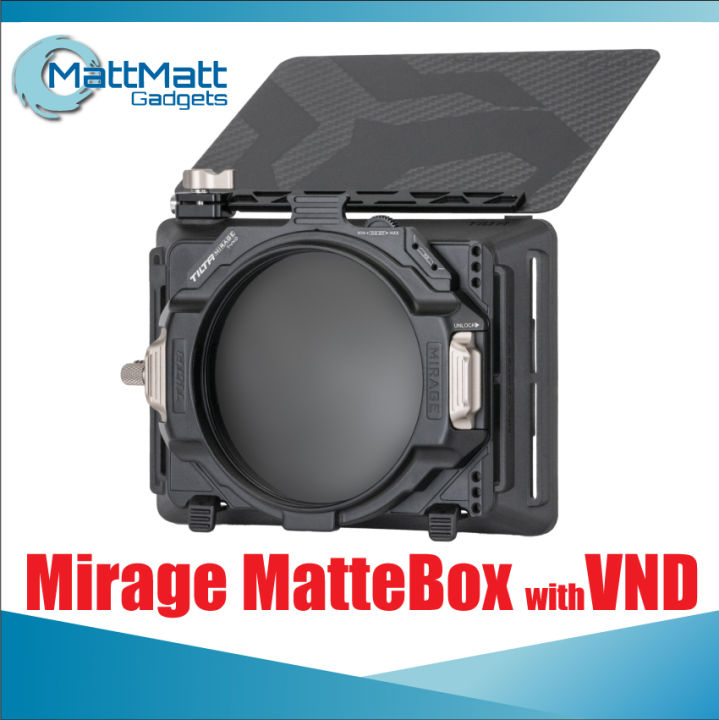 Cela permet aux utilisateurs de contrôler l'exposition avec facilité et précision. Chaque plateau de filtre dispose de sa propre vis d'arrimage pour garantir la sécurité du filtre. Les fils de 6,35 mm avec points de localisation offrent suffisamment d'espace pour les accessoires lorsque le drapeau n'est pas utilisé. Le kit VND comprend un filtre ND variable de 114 mm qui réduit de 1 à 7 arrêts de lumière. Tilta MB-T17-A Kit matte box Mirage Pro VND - Matte box Haute compatibilité : se fixe sur les objectifs cinématographiques avec des diamètres avant y compris 95 mm, 110 mm, 114 mm et 134 mm. Avec un drapeau supérieur inclus et des drapeaux latéraux en option, le Mirage Pro a la capacité de bloquer les fusées éclairantes même dans les conditions d'éclairage les plus difficiles. This Tilta Mirage Pro Matte Box VND Kit includes a 114mm variable ND filter with 1 to 7 stops of light reduction. Four clamp-on adapters provide compatibility... 【Kit mat dur】Cinq tailles de tapis durs sont disponibles pour répondre aux besoins de contrôle de la lumière. Doté de plateaux de filtre traditionnels compatibles avec les filtres 4 × 5,6, le Mirage Pro permet aux utilisateurs d'utiliser facilement les filtres pour obtenir l'esthétique visuelle souhaitée. Drapeau supérieur : bloque la lumière et contrôle les reflets indésirables. Matte Box Clip-on Professionnelle Buy - Tilta Mirage Pro Matte Box VND Kit (MB-T17-A Accessoire Caméra Cinématographique Doté de plateaux de filtre traditionnels compatibles avec les filtres 4 × 5,6, le Mirage Pro permet aux utilisateurs d'utiliser facilement les filtres pour obtenir l'esthétique visuelle souhaitée Filtre VND : couvre 1 à 7 arrêts de densité neutre pour contrôler la plupart des situations avec un seul filtre.
