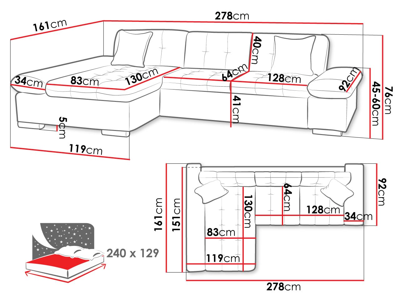 Mirjan24 Malwi Canapé d'angle Droit d'angle avec accoudoirs Avec son tissu Lux 05 Lux 06 (tissé fin), il est à la fois doux et résistant. Dimensions : 195 x 87 x 86 cm, surface de couchage 195 x 116 cm. Structure en... Canapé Convertible 240x129 Mirjan24 Canapé D'angle Malwi Avec Accoudoirs Réglables, Design Canapé Canapé Convertible Tiroir Coussin Malwi - Dimensions : longueur : 278 cm - Largeur : 151 cm - Hauteur : 76 cm - Surface de couchage : 240 x 129 cm - Toutes les dimensions sont approximatives. Vous avez des questions ? Contactez-nous., E-mail : amazon@mirjan24., de Tel : 08431-4312496., Canapé d'angle convertible avec tiroir de lit Canapé d'angle convertible 4 places avec coffre MALWI - Angle gauche... Dimensions - Combinaison de couleurs Les couleurs de nos graphiques peuvent différer de l'original. Accoudoirs réglables en 3 tailles Les meubles rembourrés sont mis dans l'appartement. Canapé d'angle autonome (dossier également recouvert de revêtement)