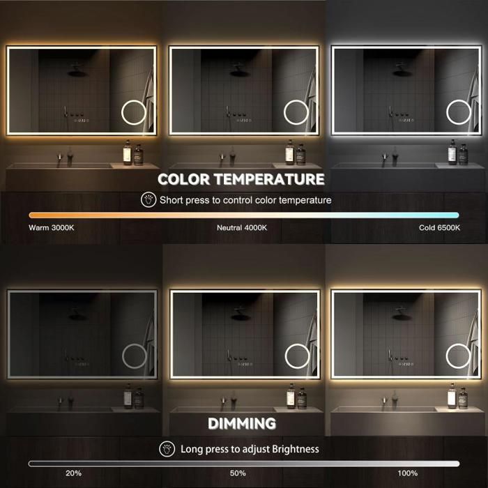 Miroir Salle De Bain Moderne Asymétrique Miroir Anti-buée 60x60 Miroir Salle De Bain LED GXSDYYDS 60x60cm - Anti-Buée 3 Couleurs Tactile Miroir Rond éclairage Intégré Miroir Lumineux Anti Buée 100x60cm STARLEAD Miroir Rond Salle de Bain avec Eclairage 60cm Diamètre Design moderne : Ce miroir de salle de bain est élégant et moderne, il agrandit visuellement l'espace tout en étant entouré de lumières LED, ce qui le rend indispensable pour votre routine de soins quotidiens. Interrupteur tactile : Le miroir LED dispose de capteurs tactiles, facilitant son utilisation d’un simple toucher. La luminosité peut être réglée grâce à un bouton d... Miroir salle de bain led est doté d‘une fonction mémoire qui retient le dernier réglage de la lumière, de sorte que vous n‘avez pas à le réinitialiser à chaque utilisation Vous pouvez vous maquiller ou vous raser immédiatement après le bain sans besoin d'attendre ou d'essuyer la vapeur d'eau sur le miroir. Il garde les pièces collées ensemble même si elles sont accidentellement cassées, ce qui est très sûr. ✨【3 Modes d‘éclairage & Lumière Réglable & Fonction Mémoire】Réglez la température de couleur (froide, naturelle, chaude) par une pression courte et la luminosité (10 %-100 %) par une pression longue. ✨【Économie d'Énergie】 Miroir connecté asymétrique salle de bain avec eclairage avec technologie LED moderne et économe en énergie, classe d'efficacité énergétique A++, durée de vie max. Avec une faible consommation d'énergie, vous profitez d'une visibilité améliorée et d'une touche de sophistication. ✨【IService Professionnel】S‘il y a un problème après votre achat, veuillez nous contacter avec des photos, nous vous fournirons une solution dans les 24 heures Marque. GXSDYYDS · Type de chambre. Salle de bain · Forme. Ondulé · Dimensions du produit. 120L x 60l centimètres · Matériau du cadre. 玻璃 · Style. Moderne